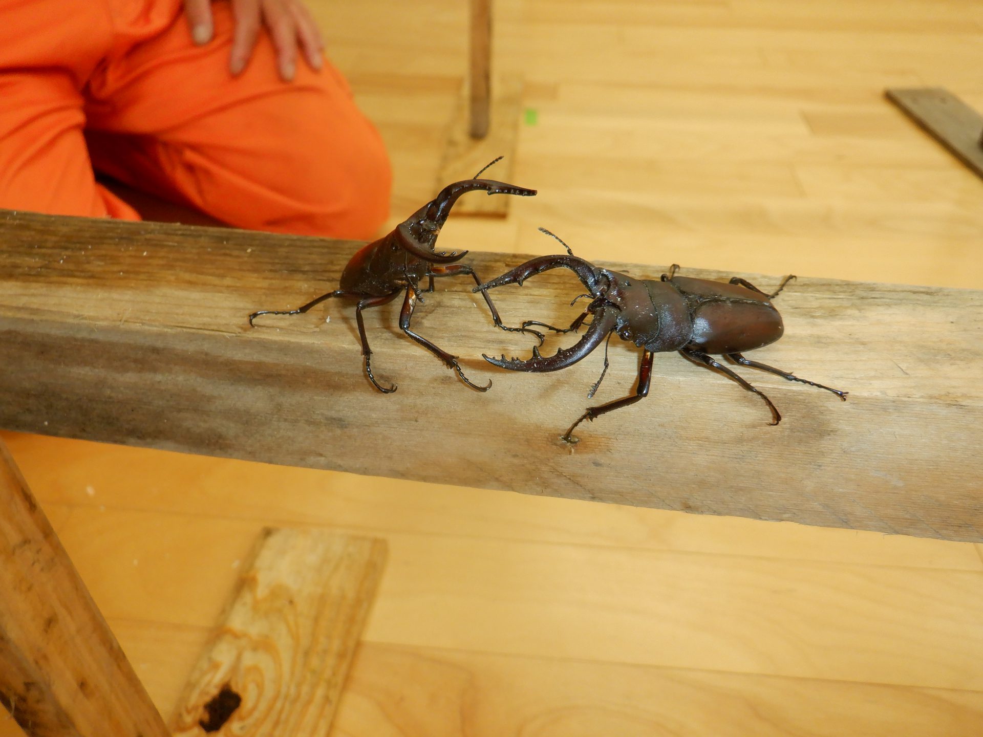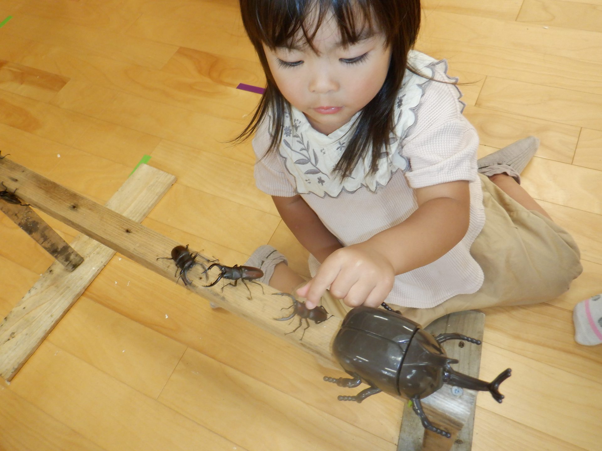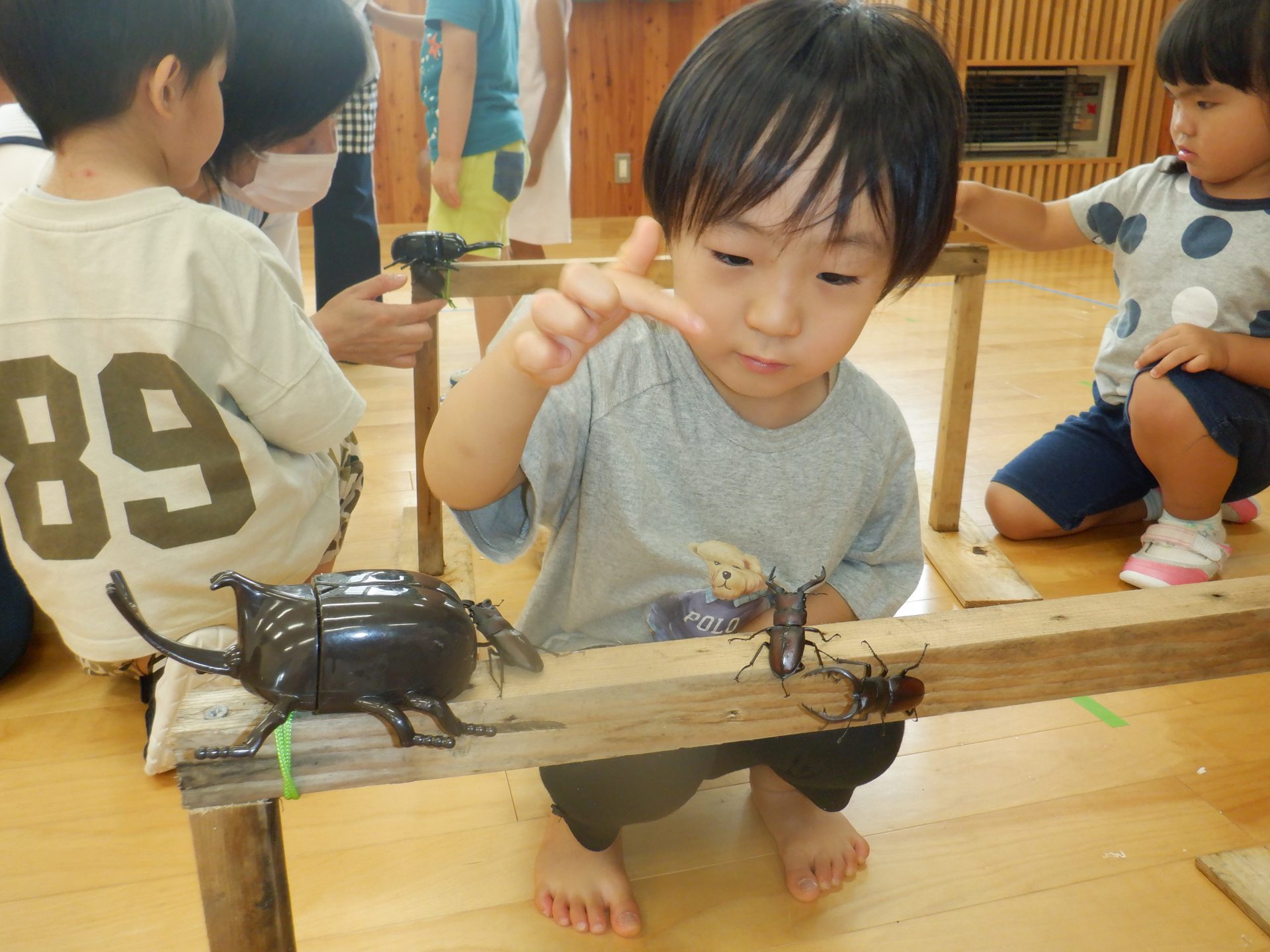 子ども達に大人気のカブトムシやクワガタが登場し、みんなの目がキラキラしています。
