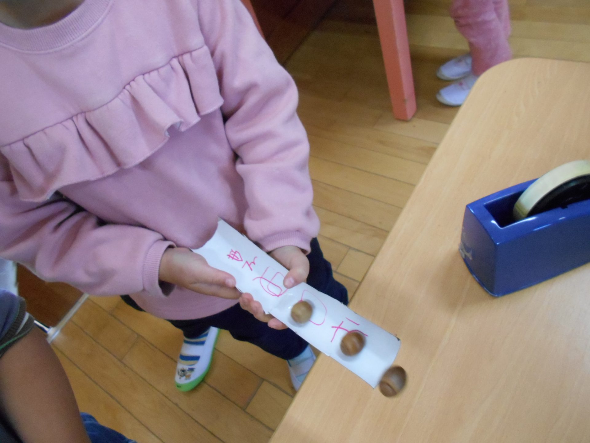 「ジェットコースターみたいだね!」「どんぐりコースターの完成だー!」と大喜びでした。