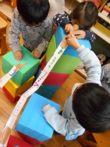「もっと高くしたいな」と考え、積み木を使ってみると・・・
