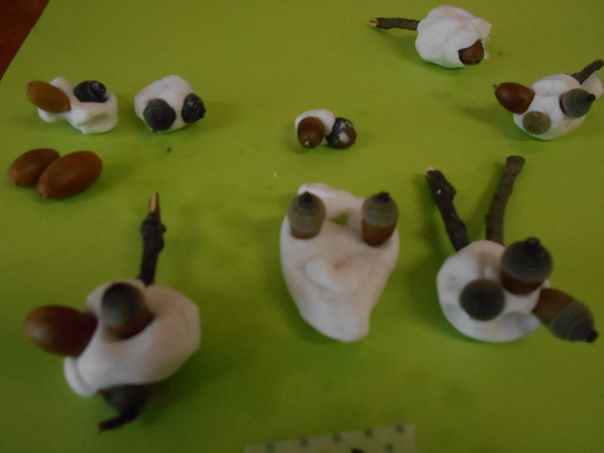 近くの中学校へお散歩に出かけて拾ったどんぐりを、並べたり、飾ったりして楽しんでいました。