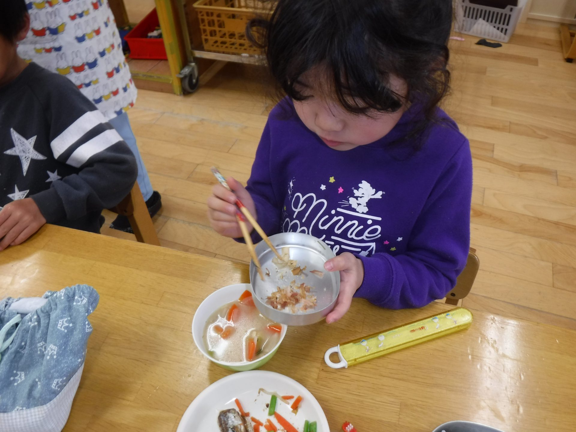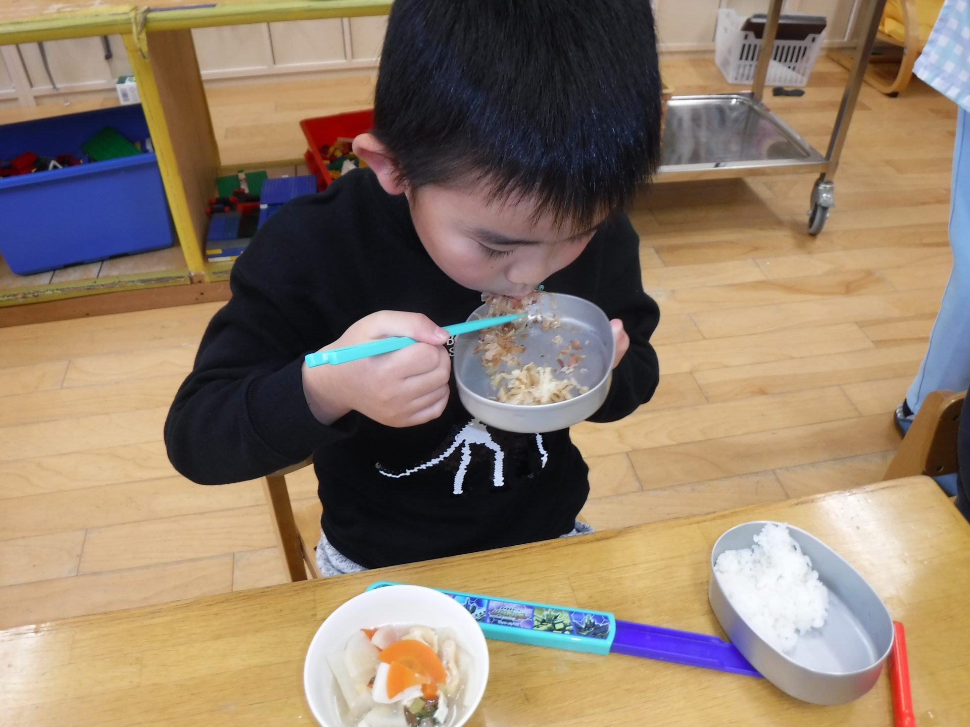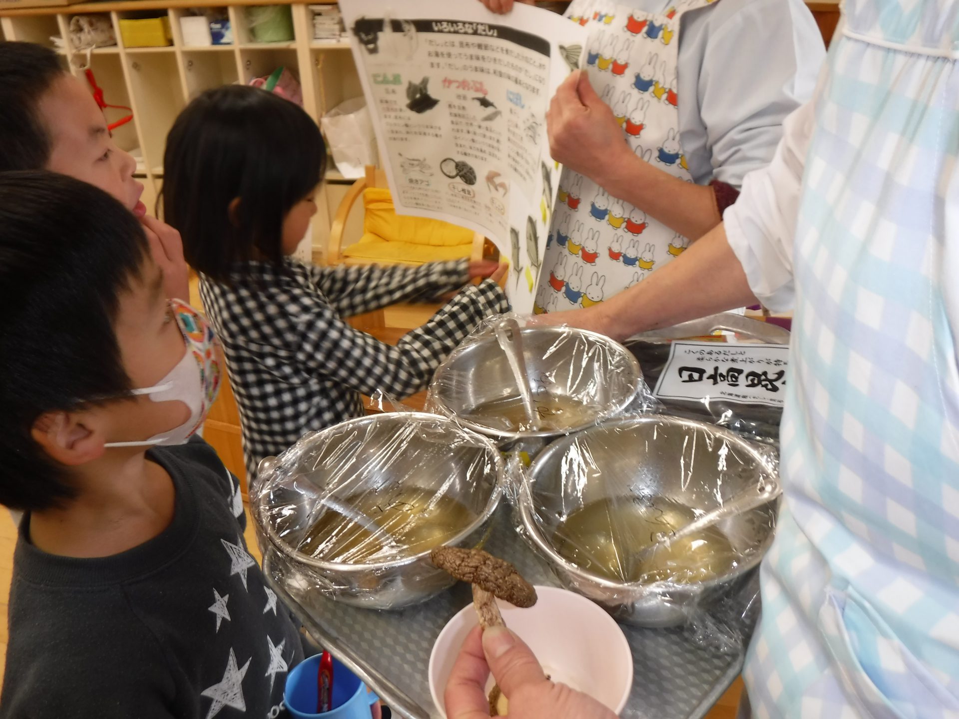 幼児期は、味覚が形成される大事な時期です。いろいろな食材に触れながら、味覚を広げていきたいと思います。