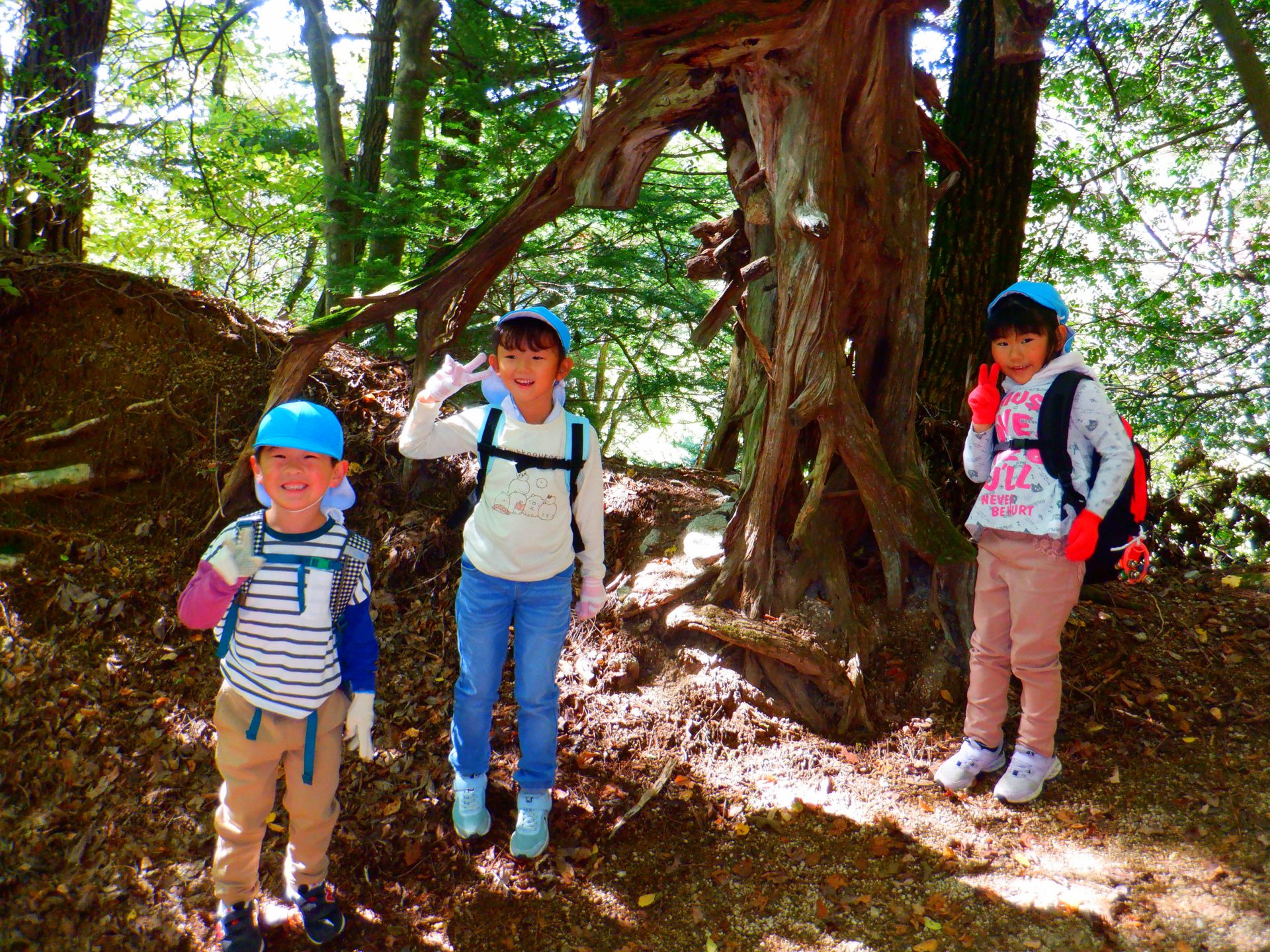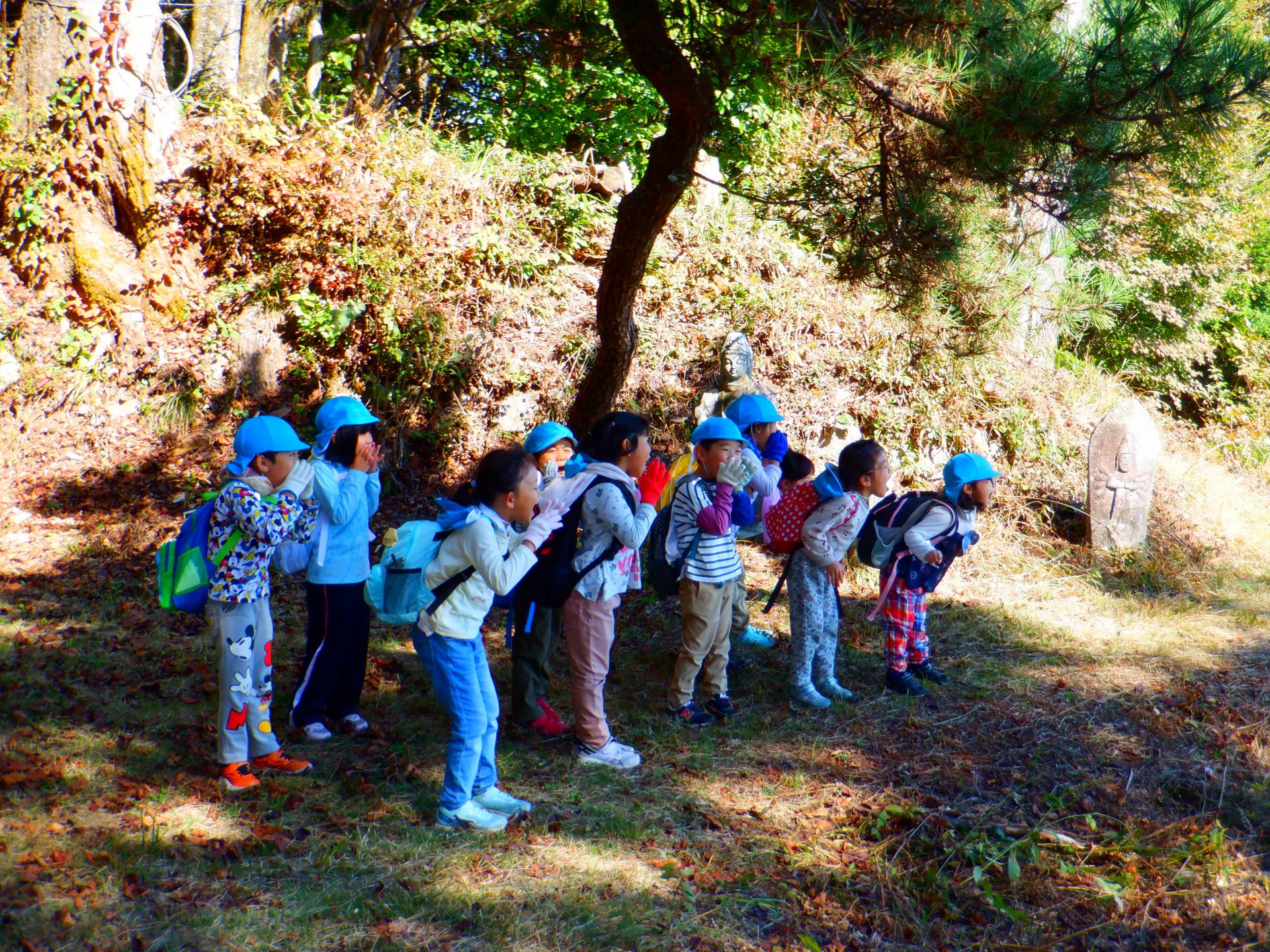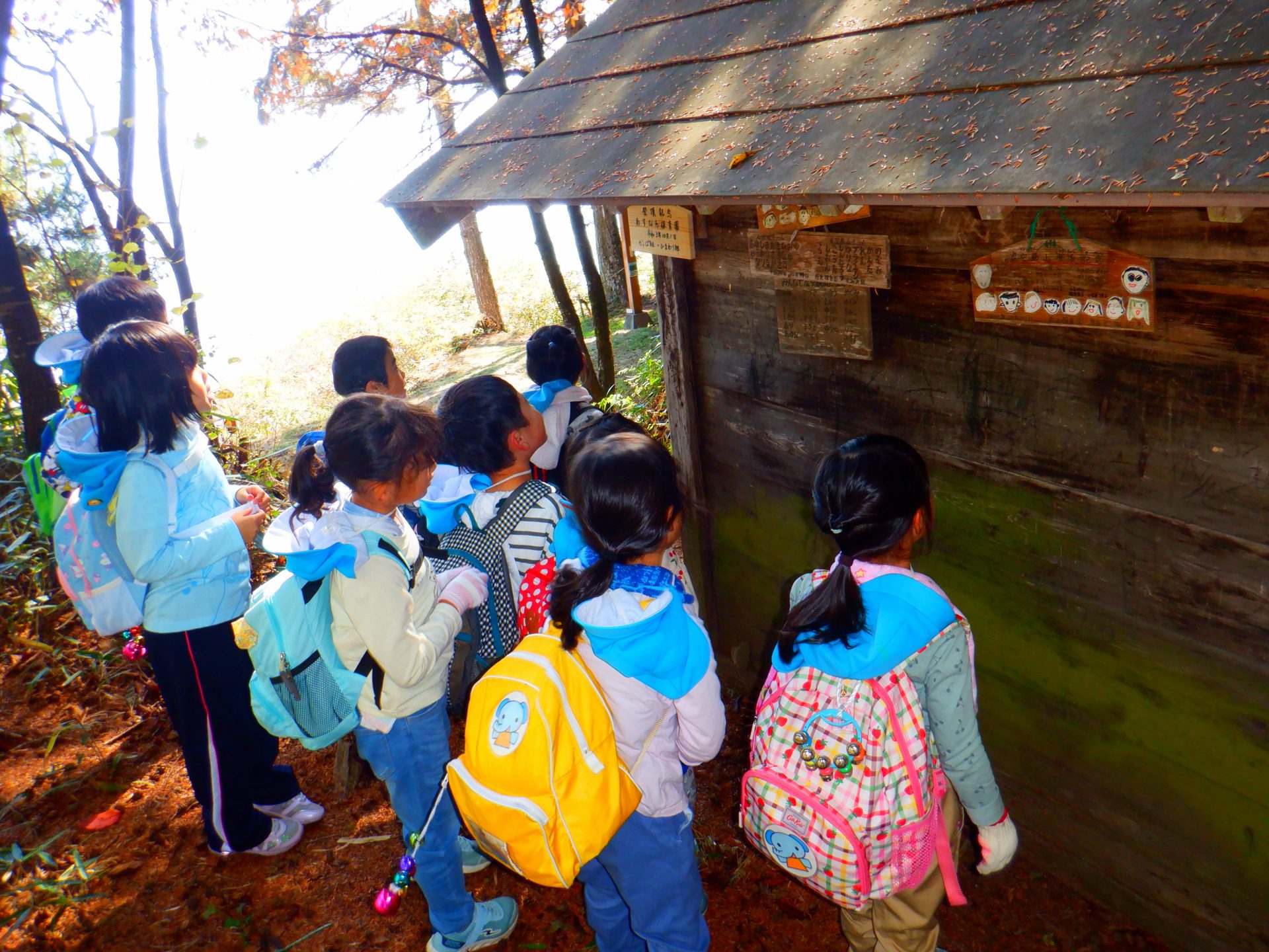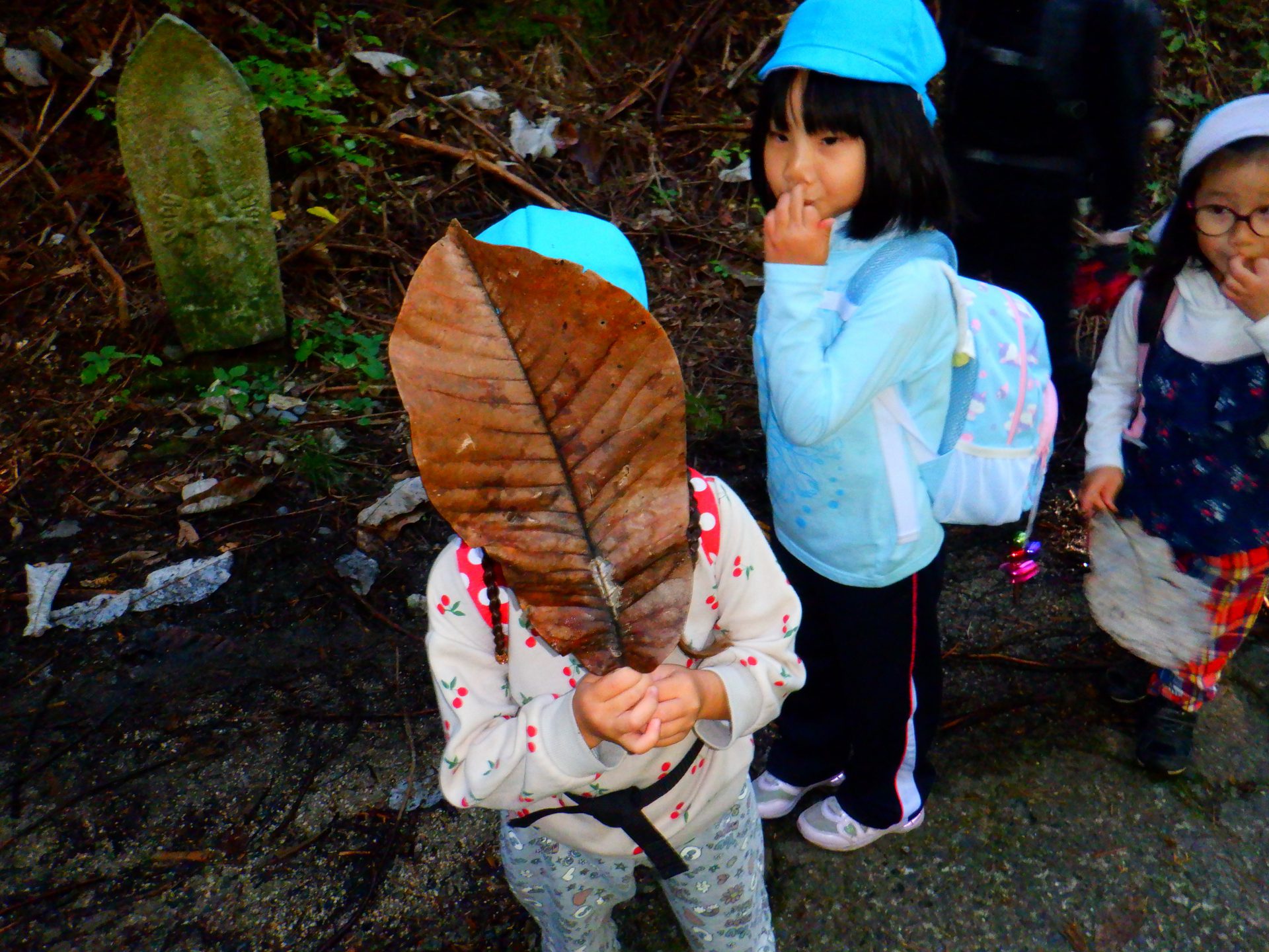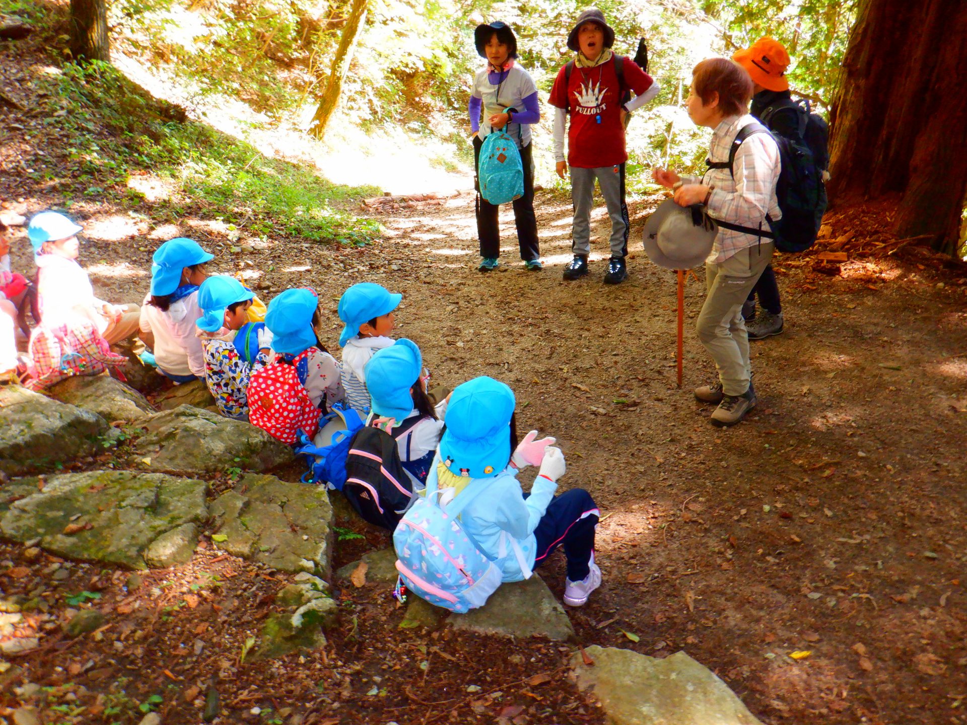 大人でもなかなか大変な登山。子どもたちは「どんぐりコロコロの替え歌」を歌うなど、どの子も楽しみながら、意欲的にどんどん歩いていく姿に感動した。