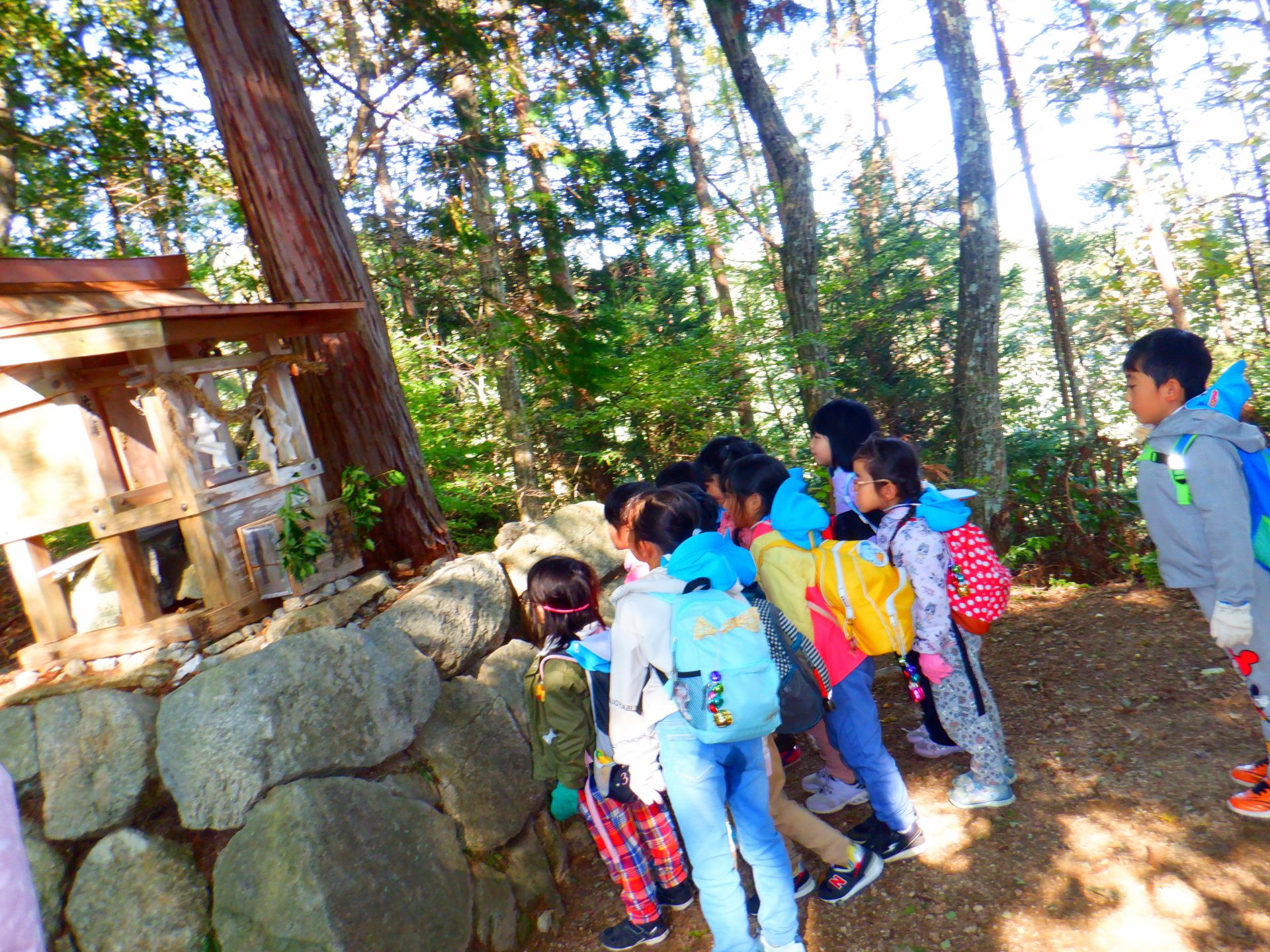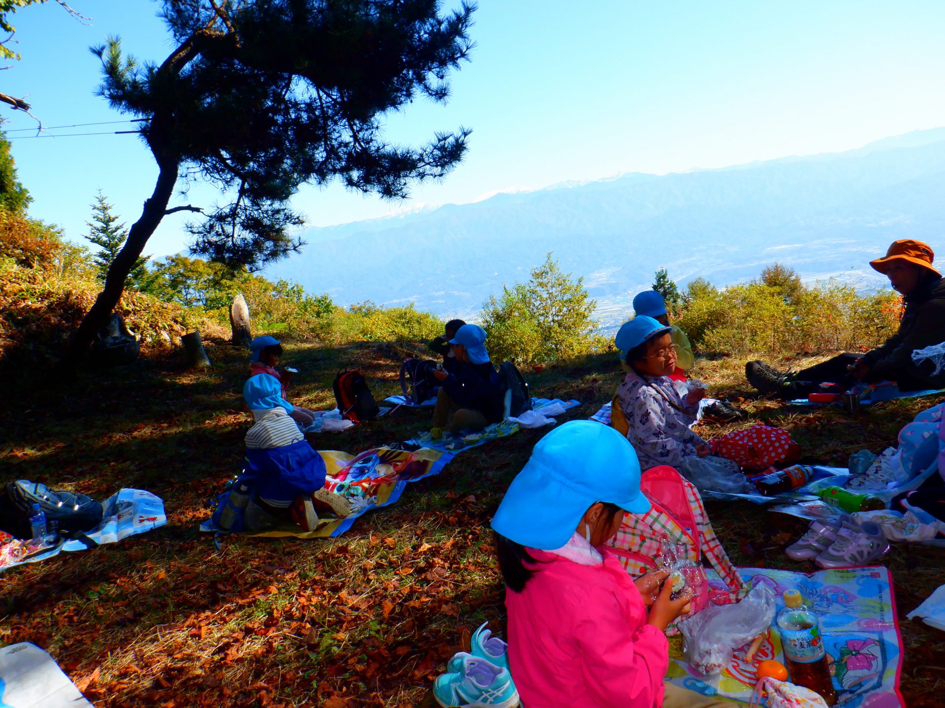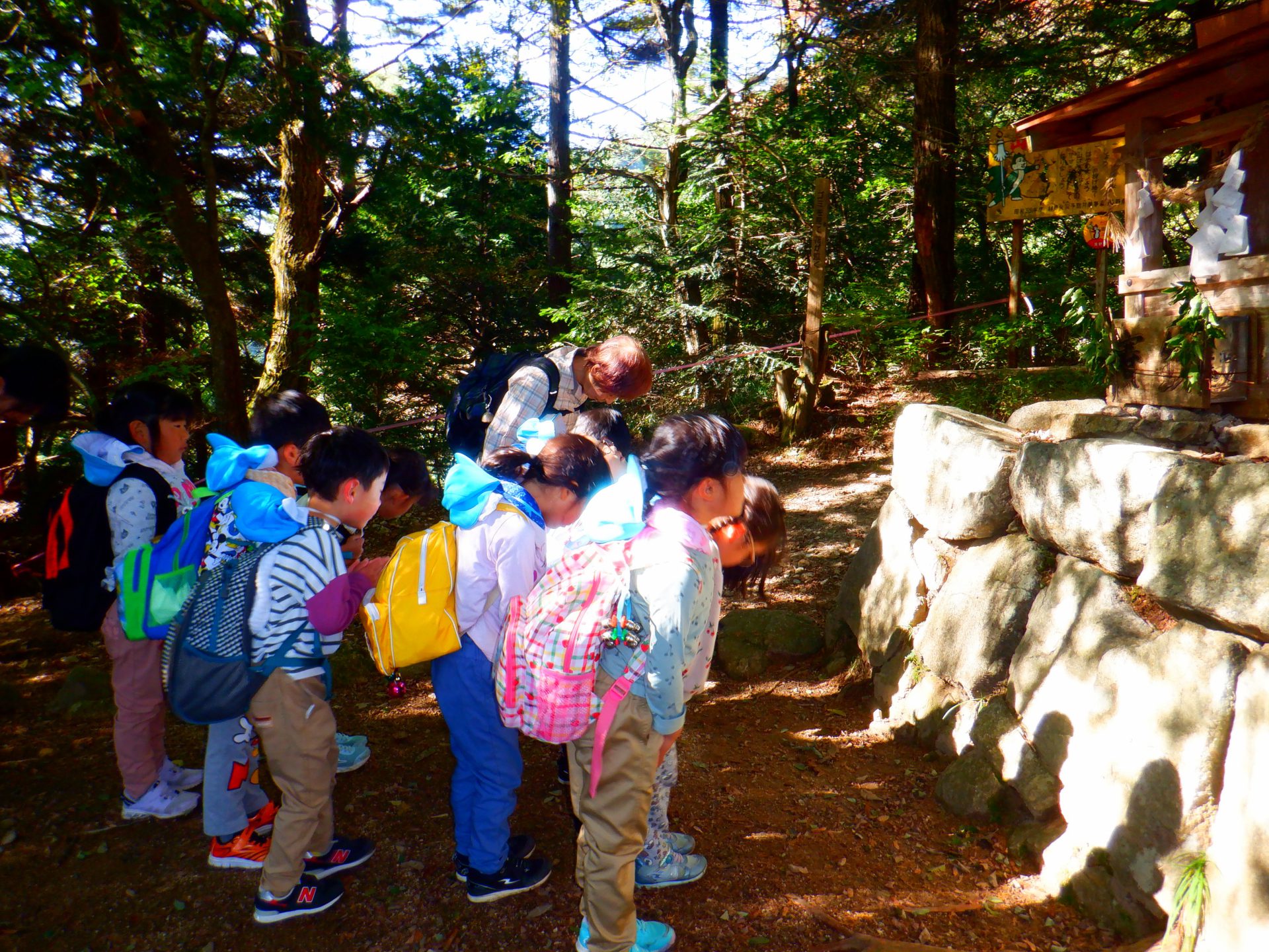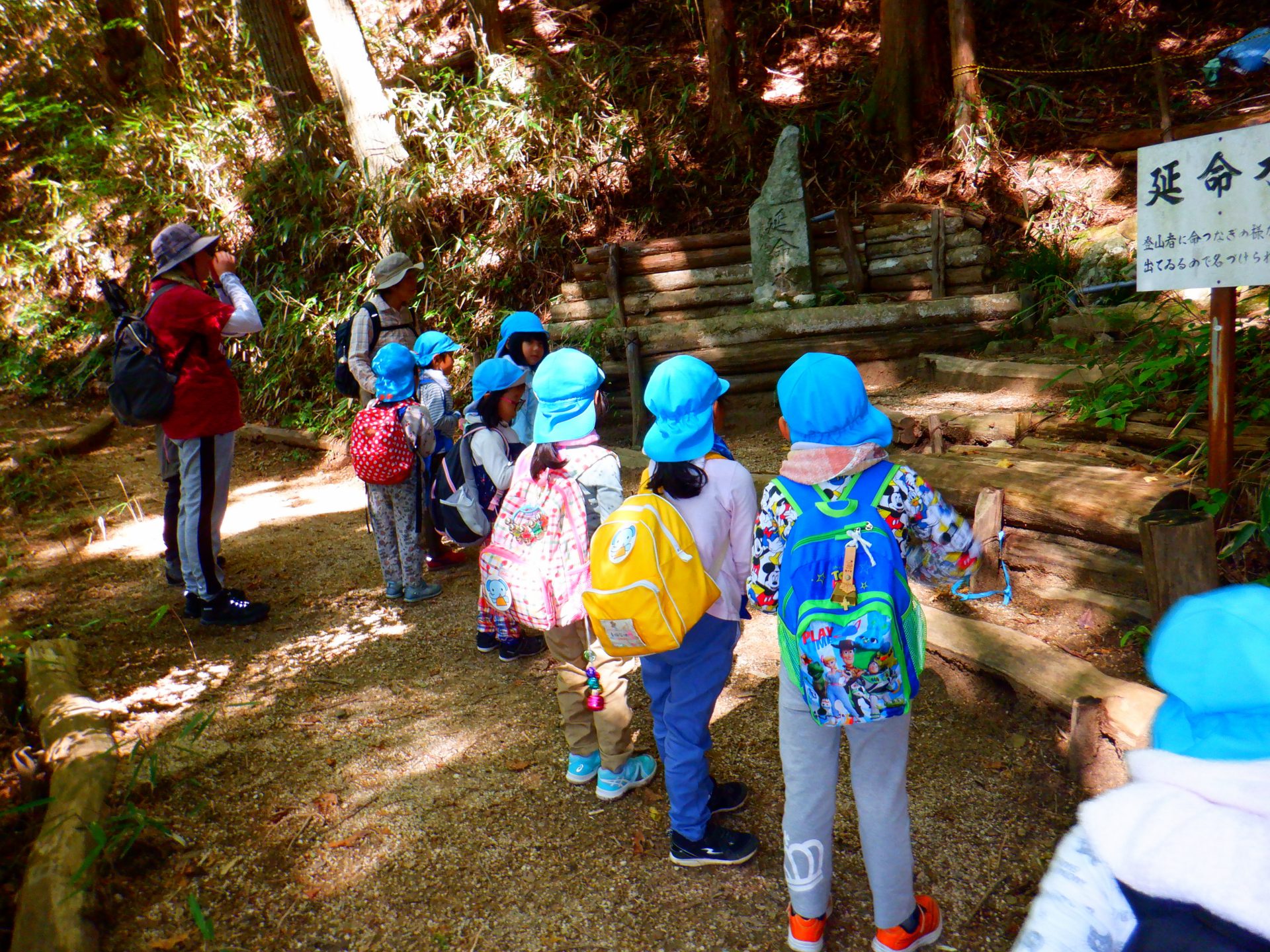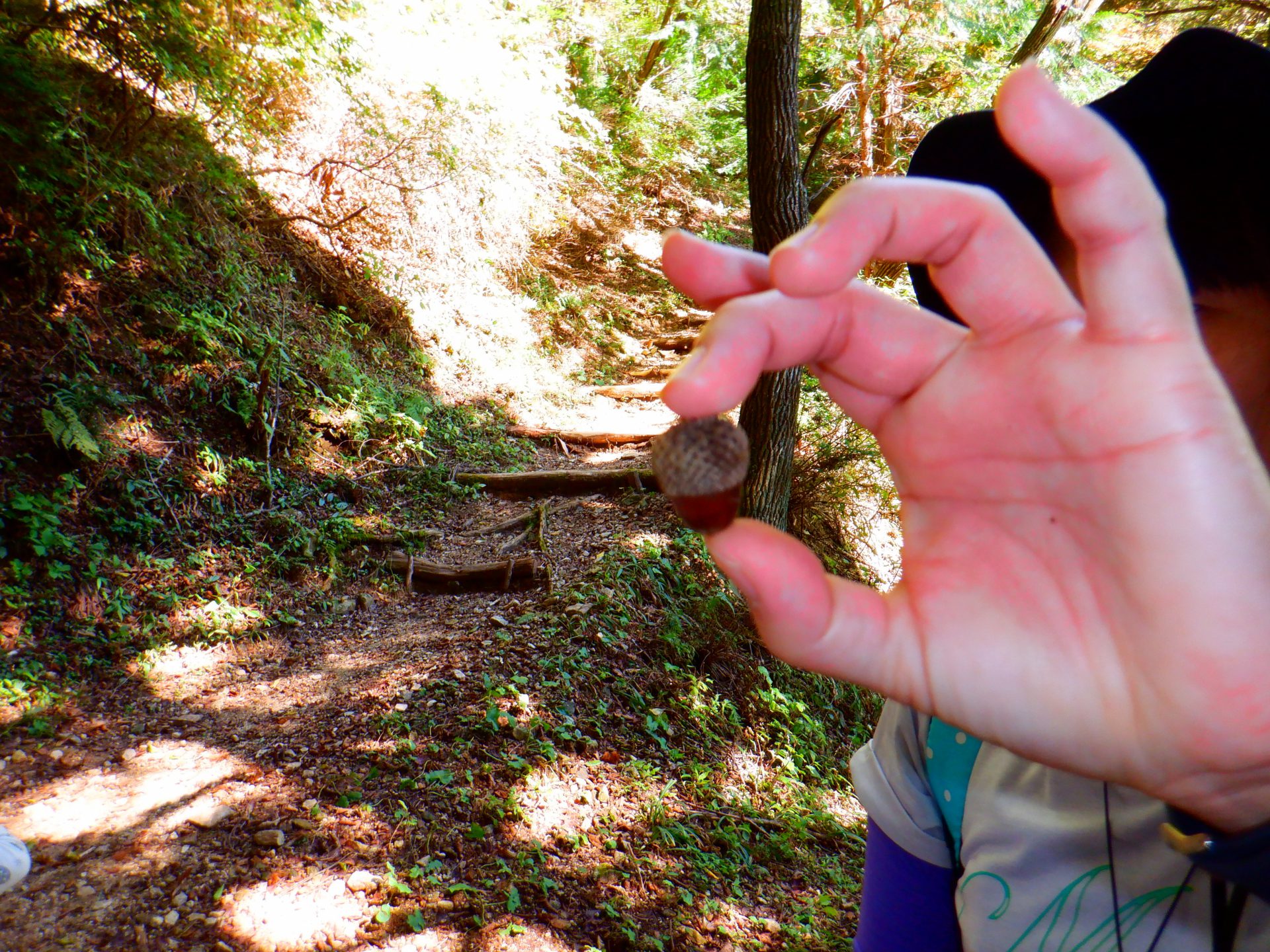 大人でもなかなか大変な登山。子どもたちは「どんぐりコロコロの替え歌」を歌うなど、どの子も楽しみながら、意欲的にどんどん歩いていく姿に感動した。