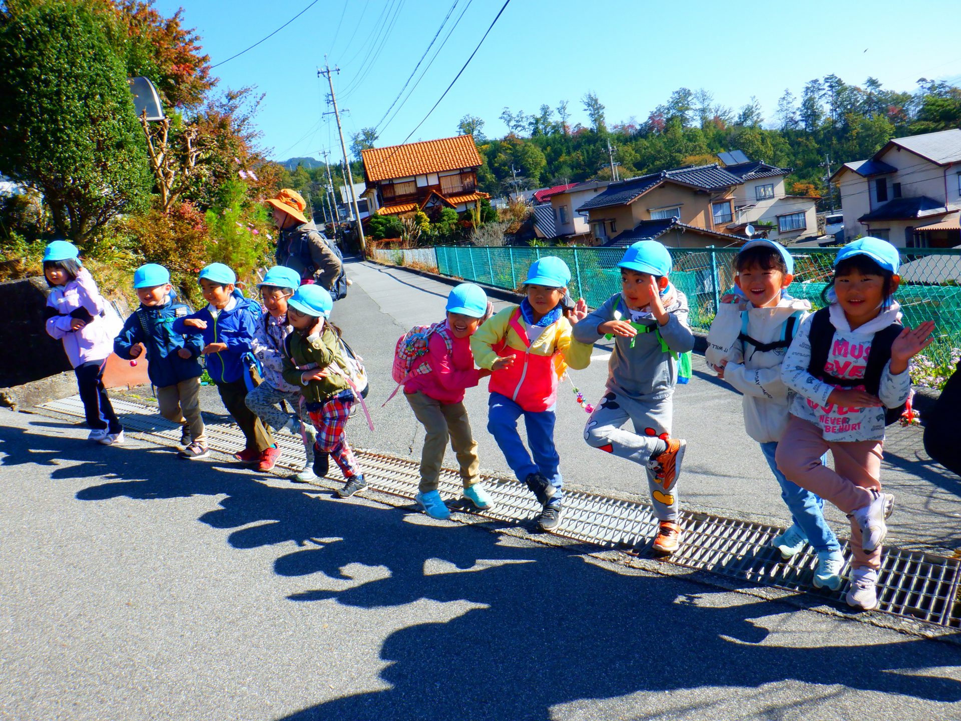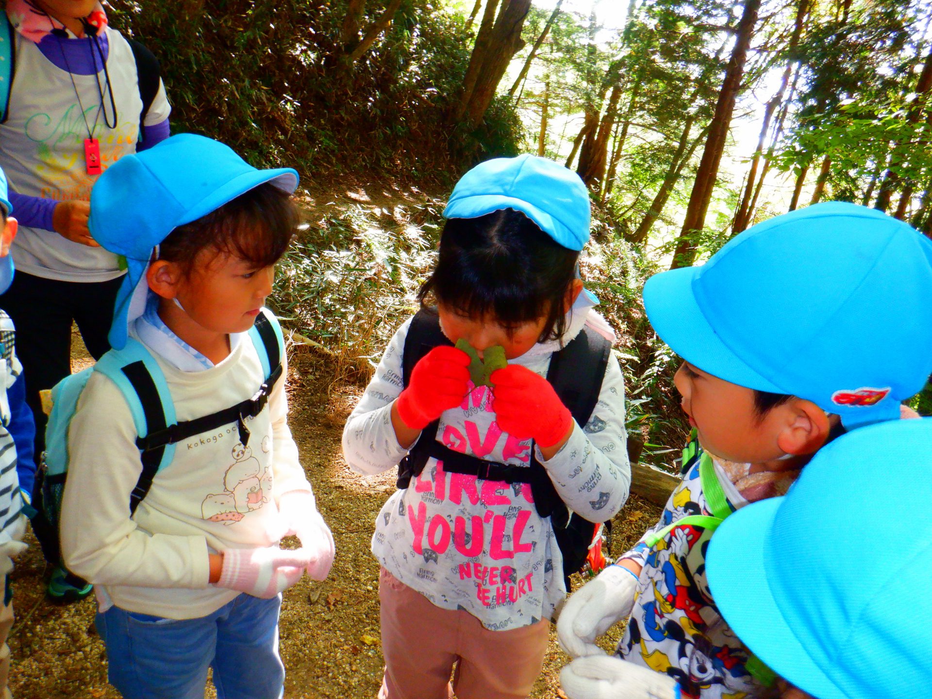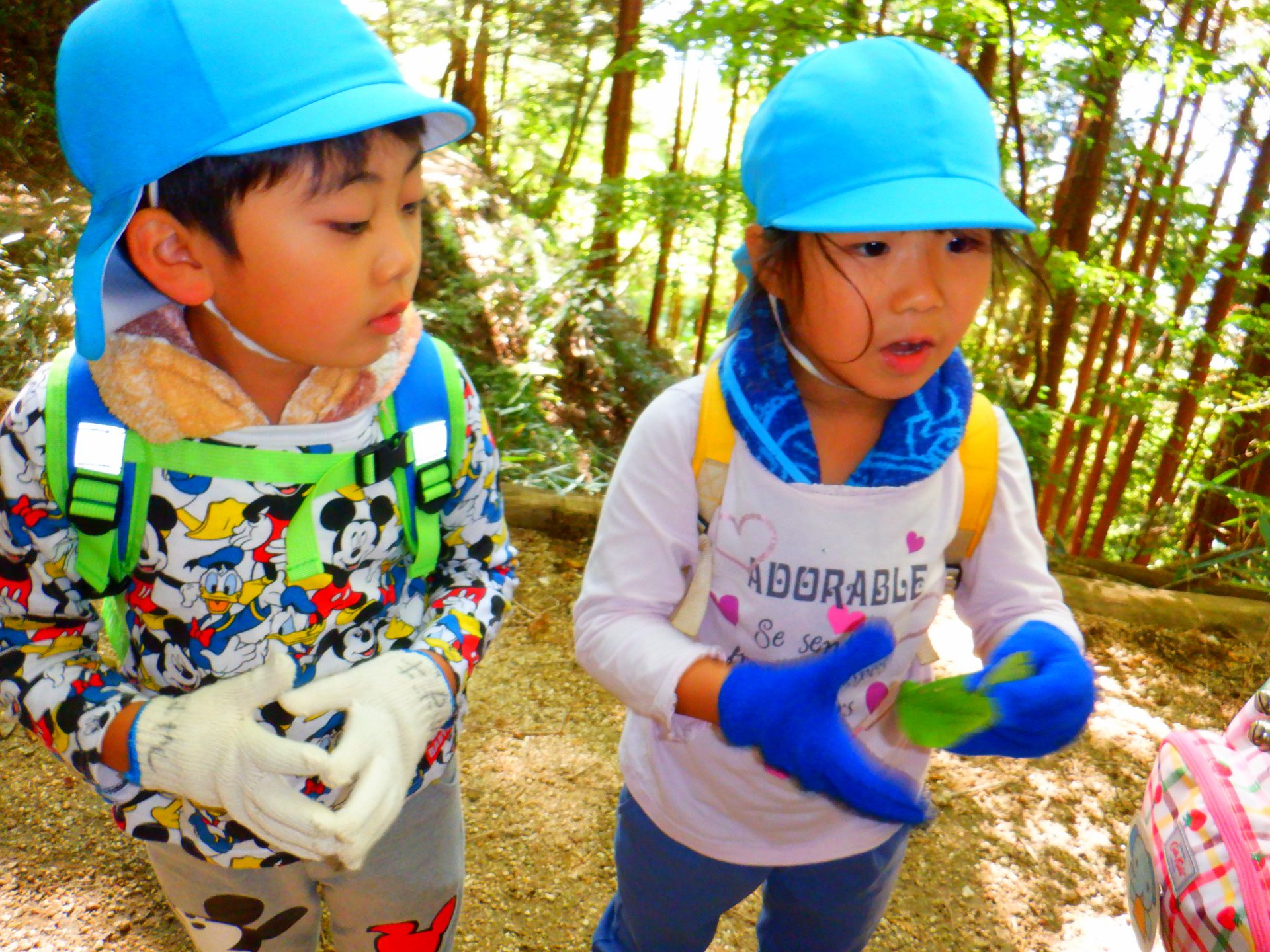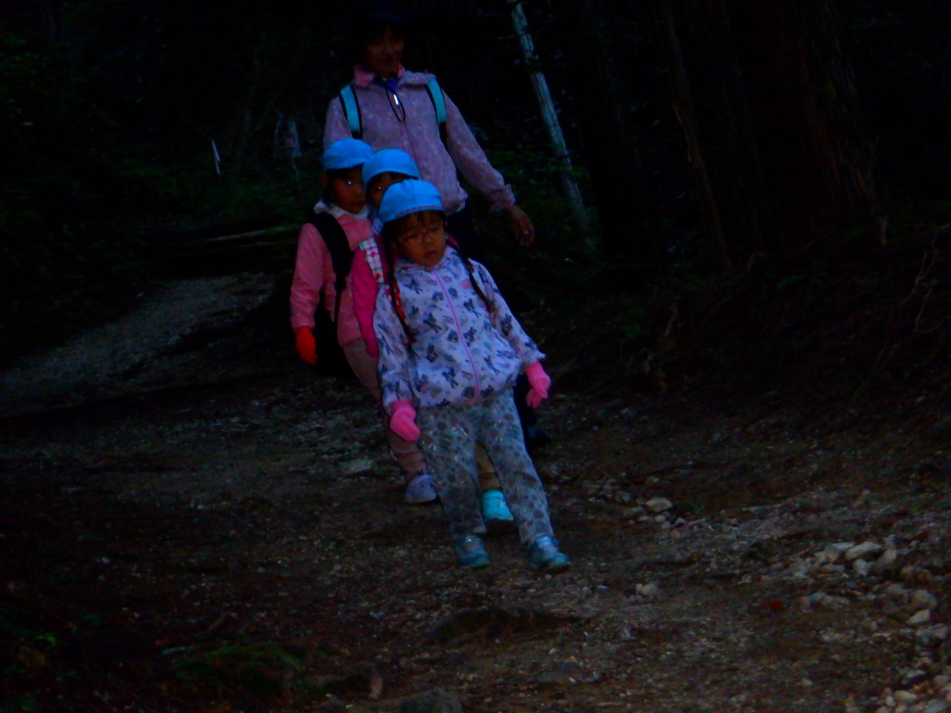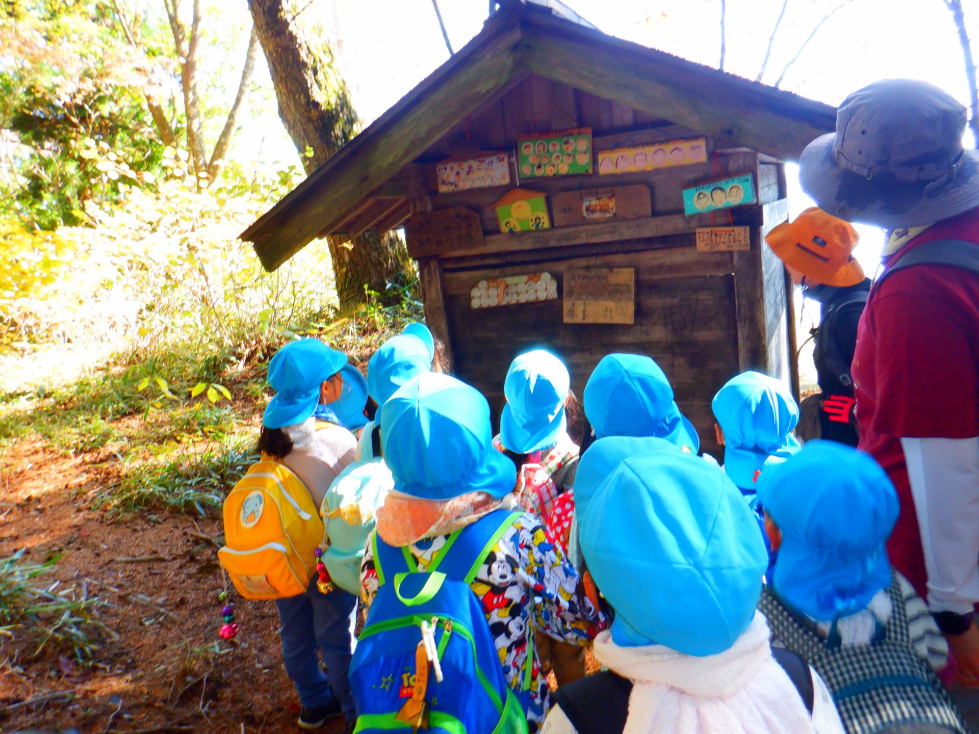 大人でもなかなか大変な登山。子どもたちは「どんぐりコロコロの替え歌」を歌うなど、どの子も楽しみながら、意欲的にどんどん歩いていく姿に感動した。