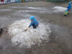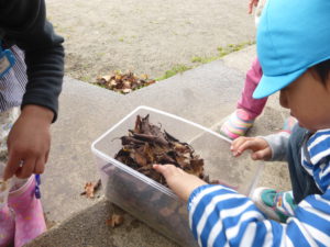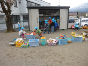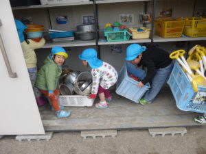 今までは外遊びの砂場道具も年長や年中のお兄さん・お姉さんがすべて準備してくれていたのですが今度は自分達で準備します。