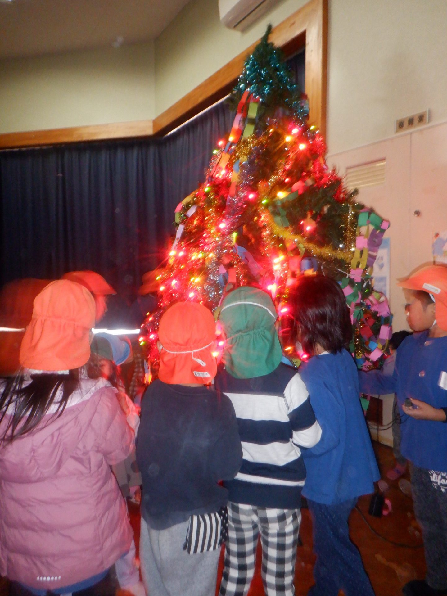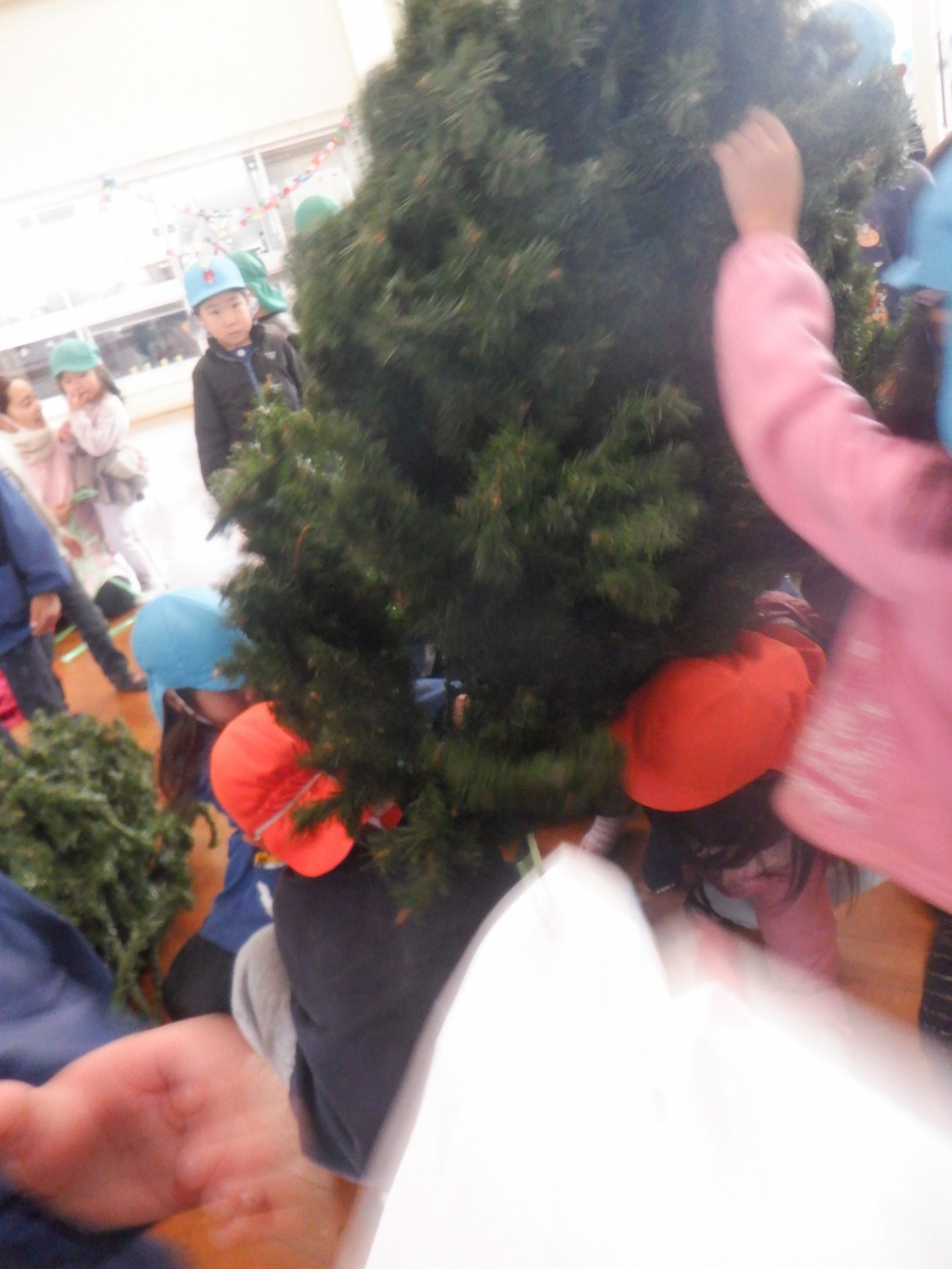 保育園の駐車場に落ちていた大きな荷物と手紙から、「サンタさんから届いたんだ。」と子ども達のイメージが広がり、ツリーを飾ったり、ダンスを踊ったりが始まりました。