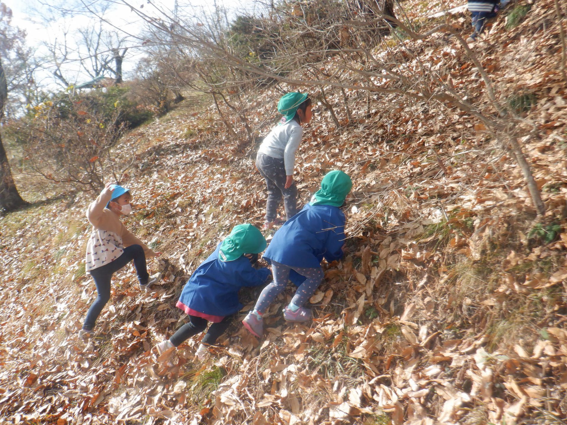 保育園の近くで木がたくさんあって、高いところは万寿山だとでかけていきます。