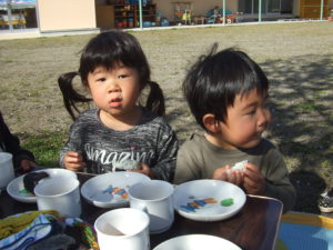 いつもは「じぶんでやる!!」とはりきっている小さい子ども達ですが、今日はお兄さんお姉さんに手伝ってもらえてとても嬉しそうでした。
