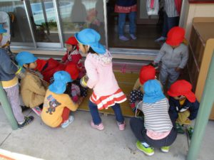 出発前に年長児が未満児のお部屋に向かえにきてくれました。
