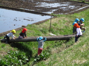 危険がないように保育士も近くにいますが、子ども達も自分で危なくないように考えて渡っています。