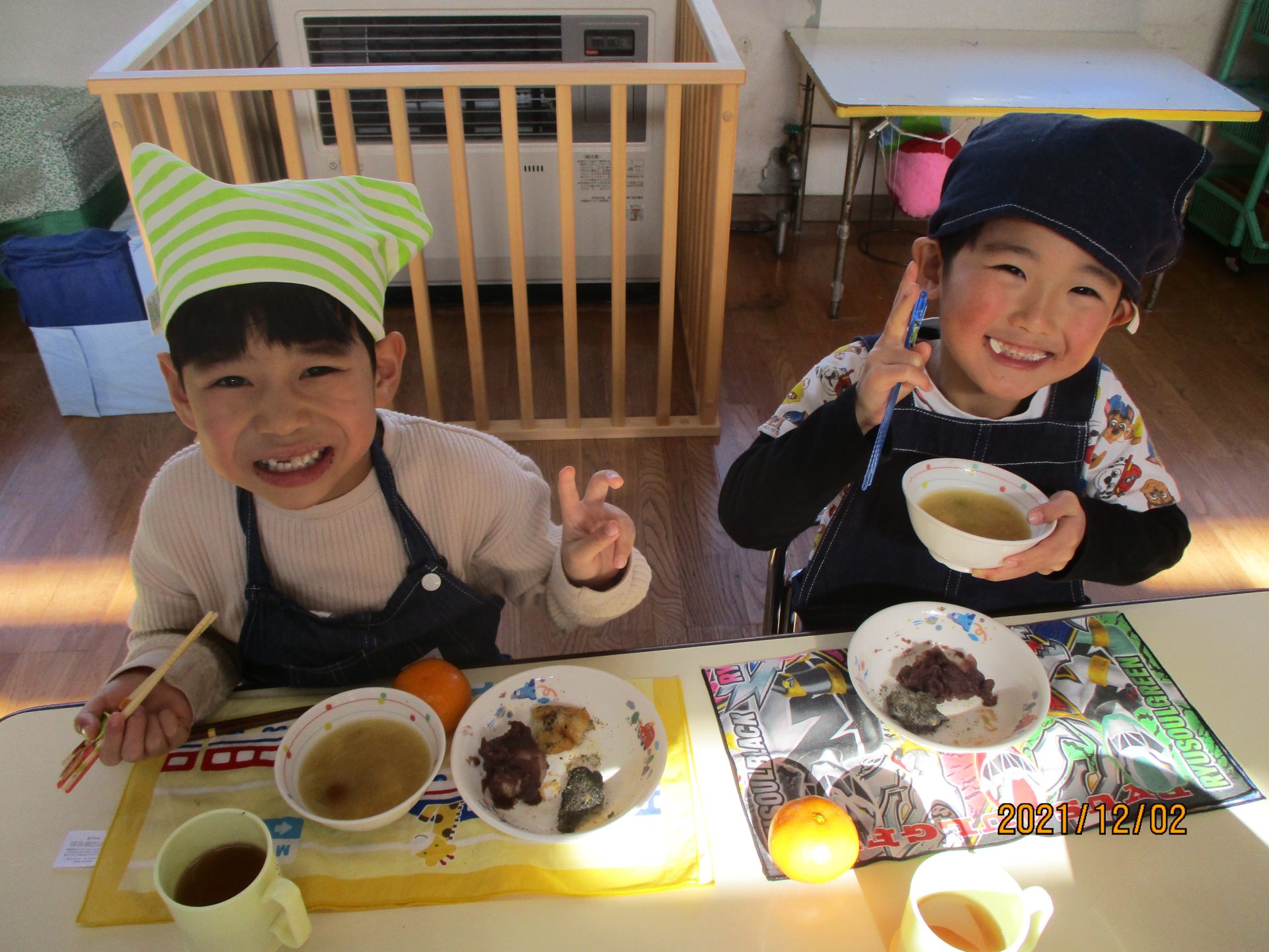 「早く食べようよ!!」とできたてのお餅を食べたくてうずうず・・・たくさ〜んおかわりをして、おいしくいただきました。見てください、この表情!!おいしさと嬉しさが伝わりますね。