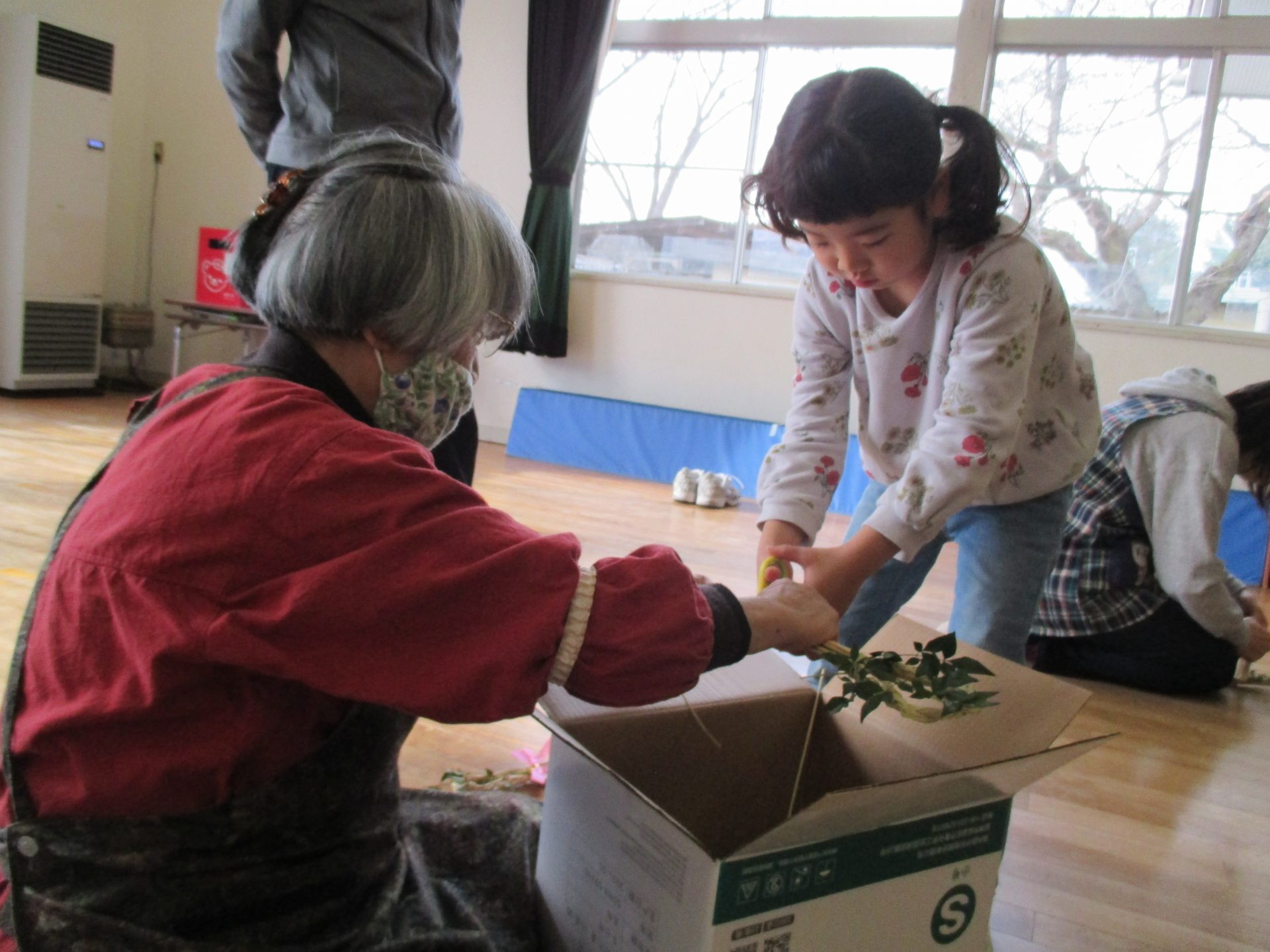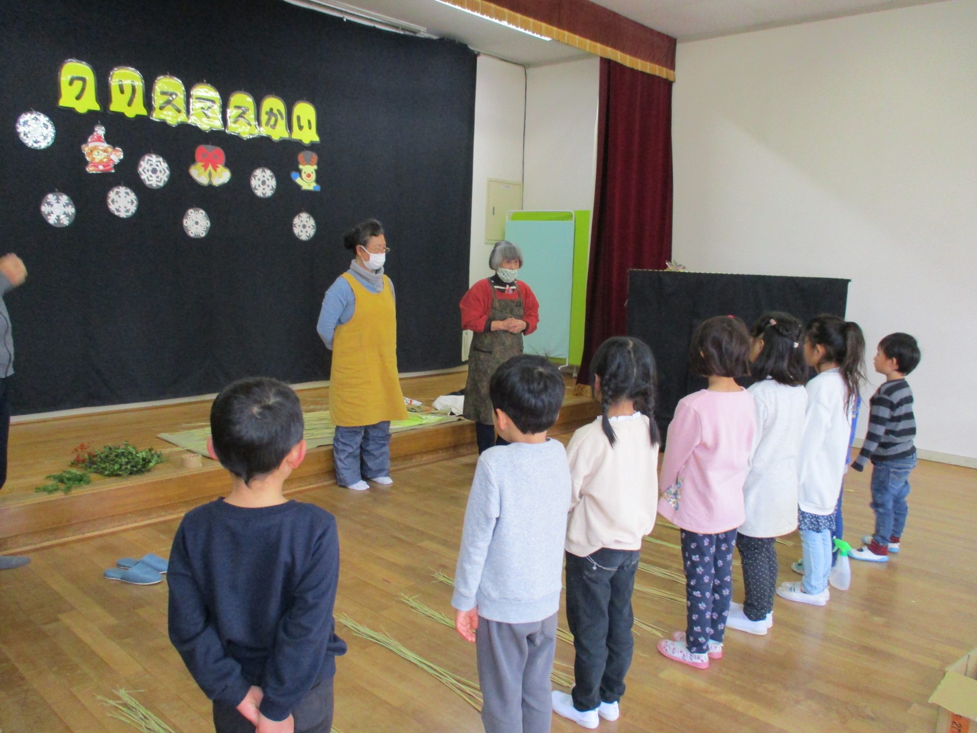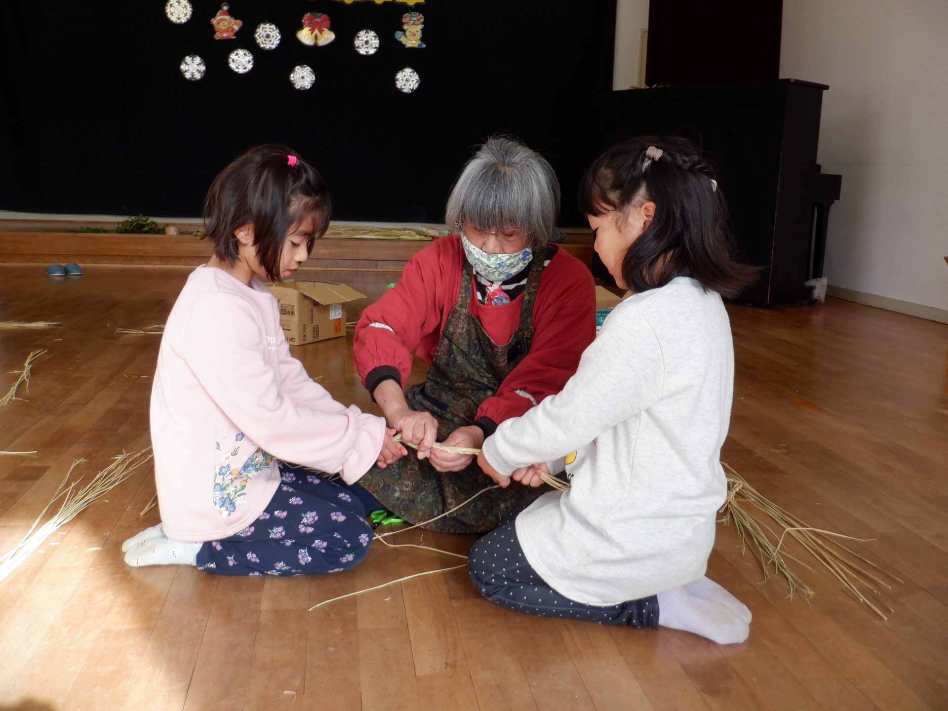 地域の岡村さんと丸山さんに来ていただき、しめ縄作りをしました。