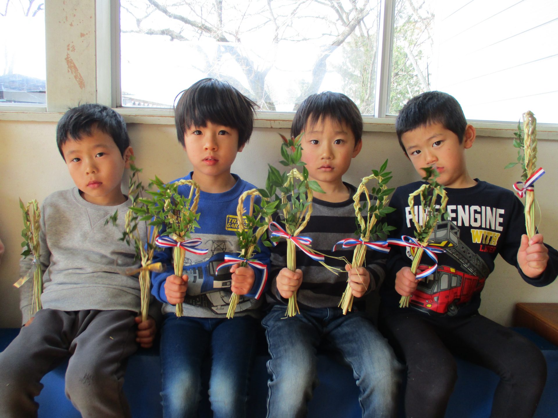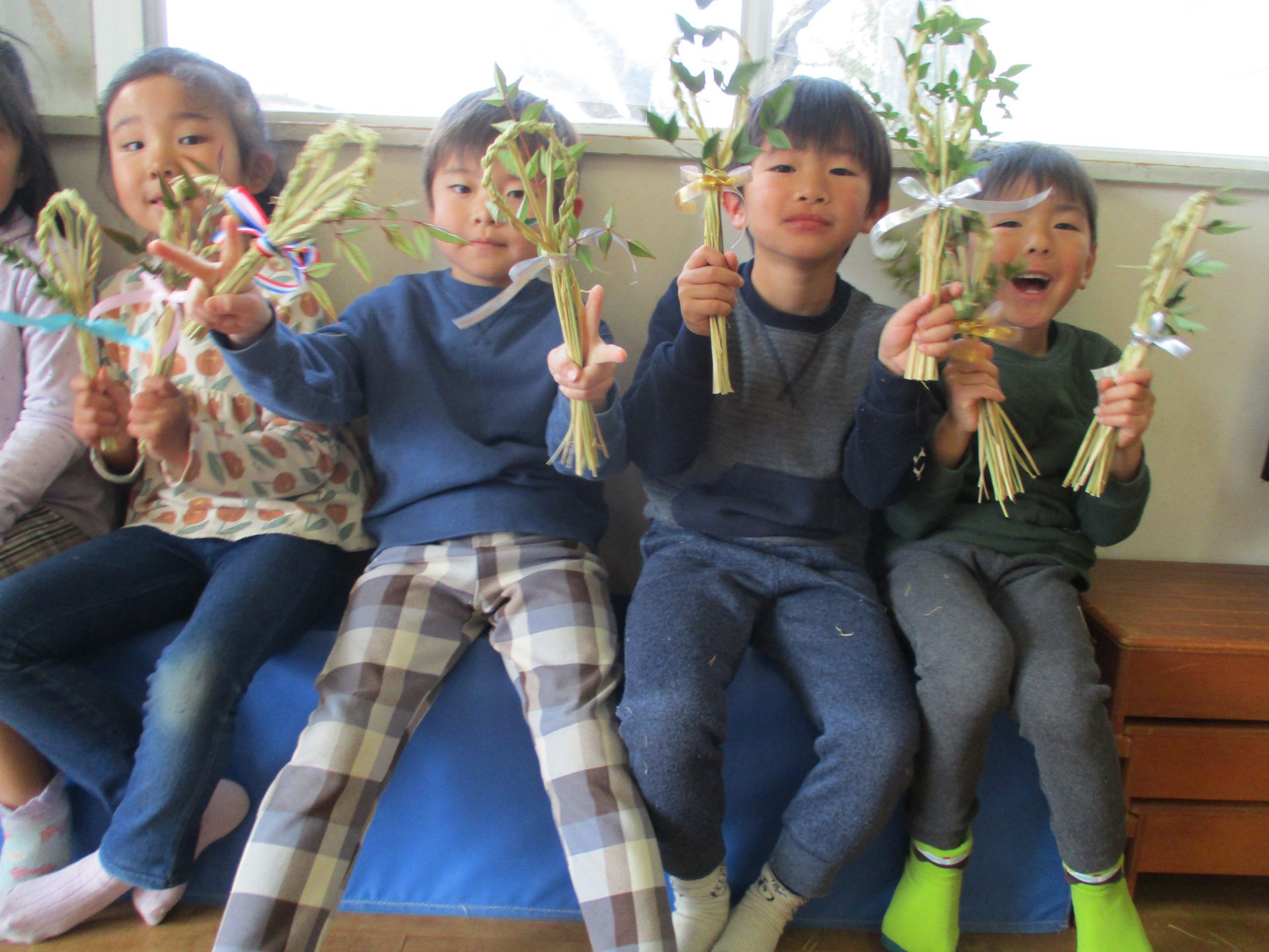 それだけでなく、未満児や年少の子ども達の分までしめ縄を作って持ってきてくだるのです。