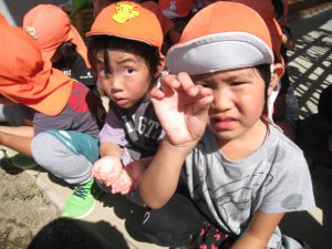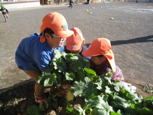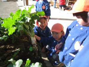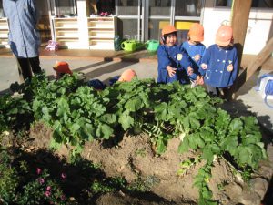 いよいよ収穫の日。子ども達は力と期待を込めて思いっきり引っ張りました。