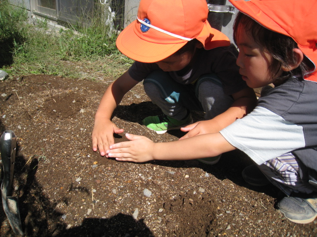 そっと土をかけ「おおきくなーれ!」とおまじないをしました。