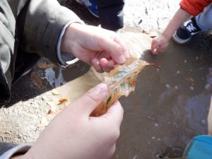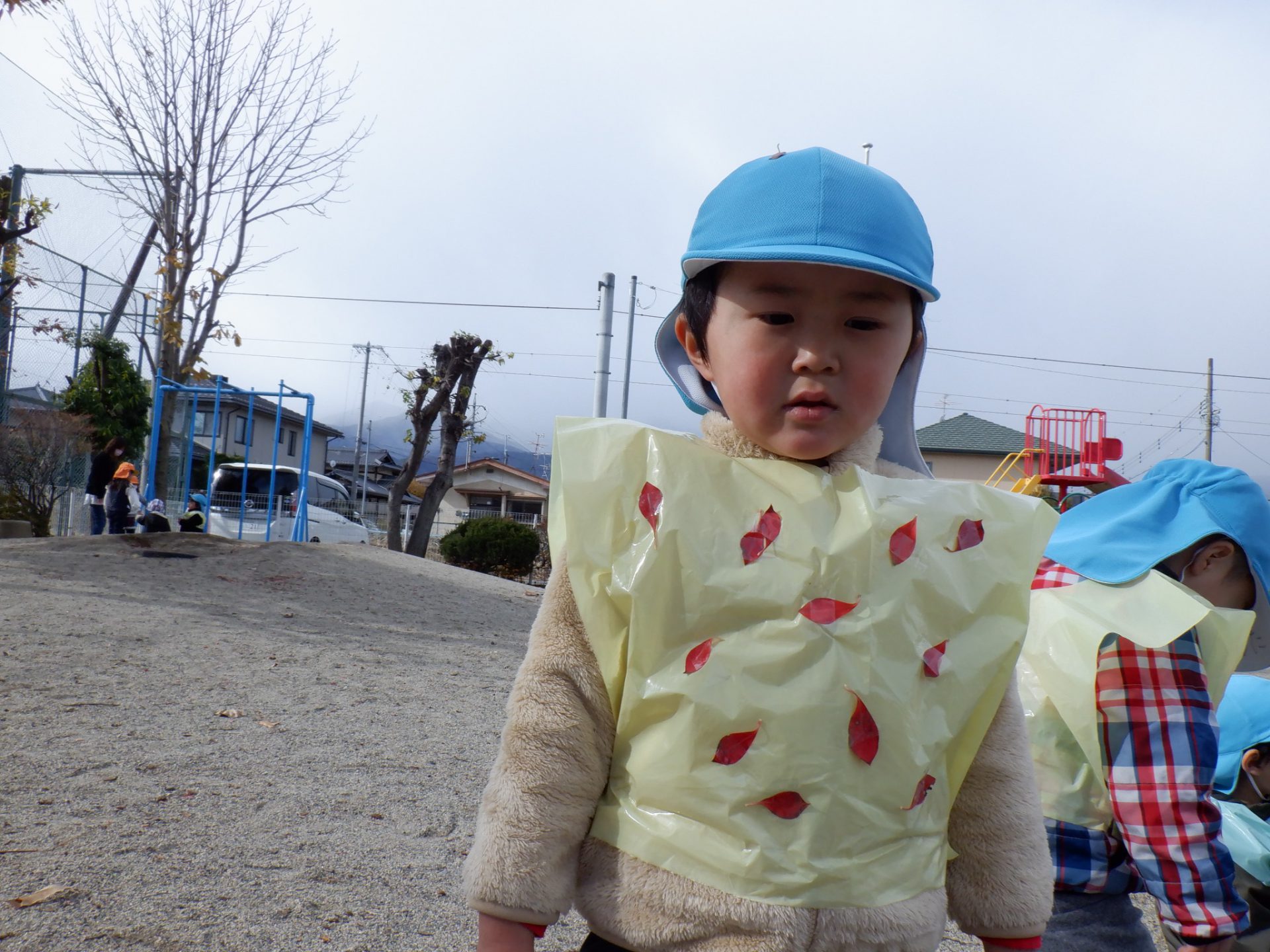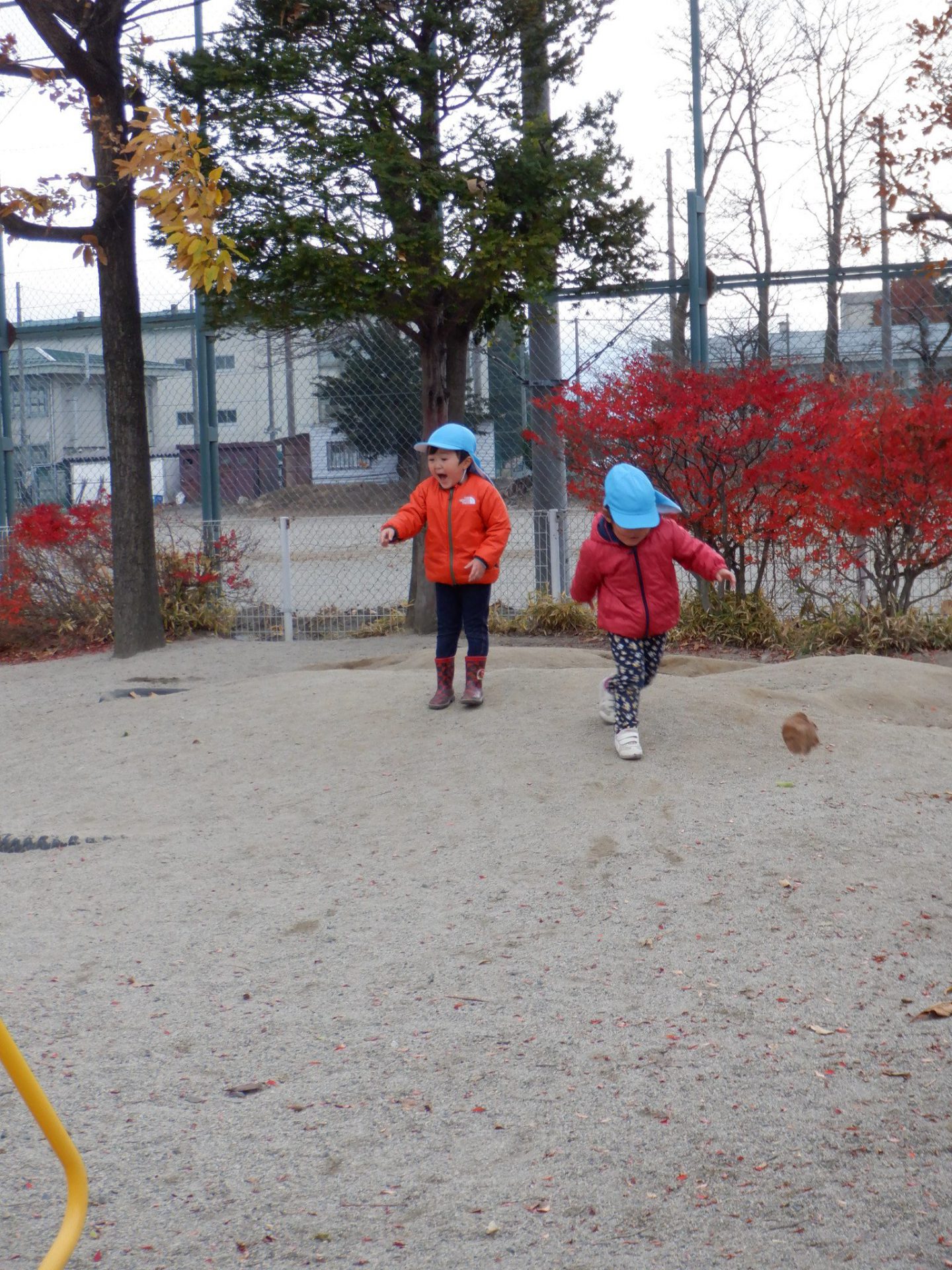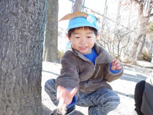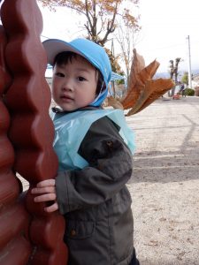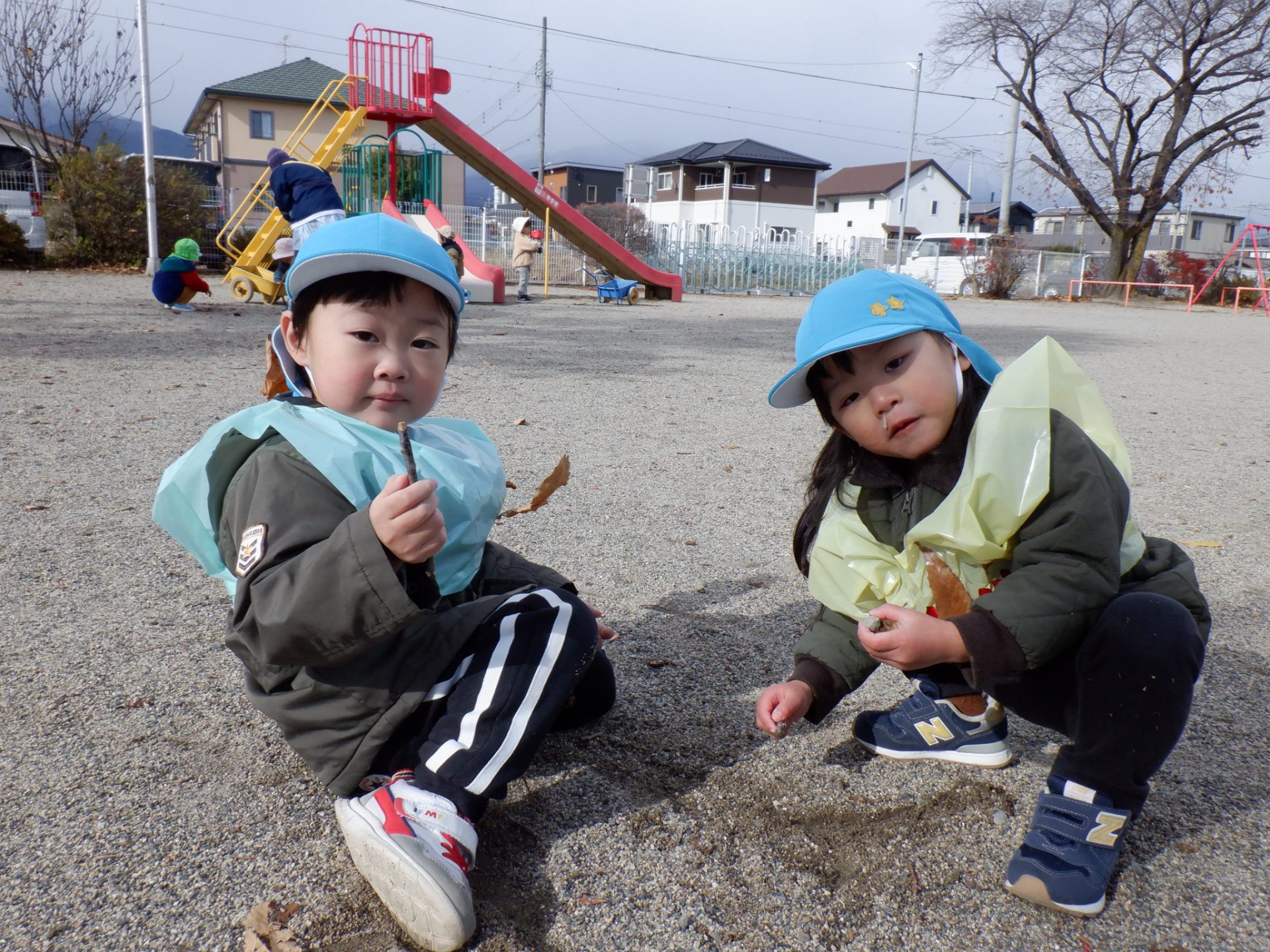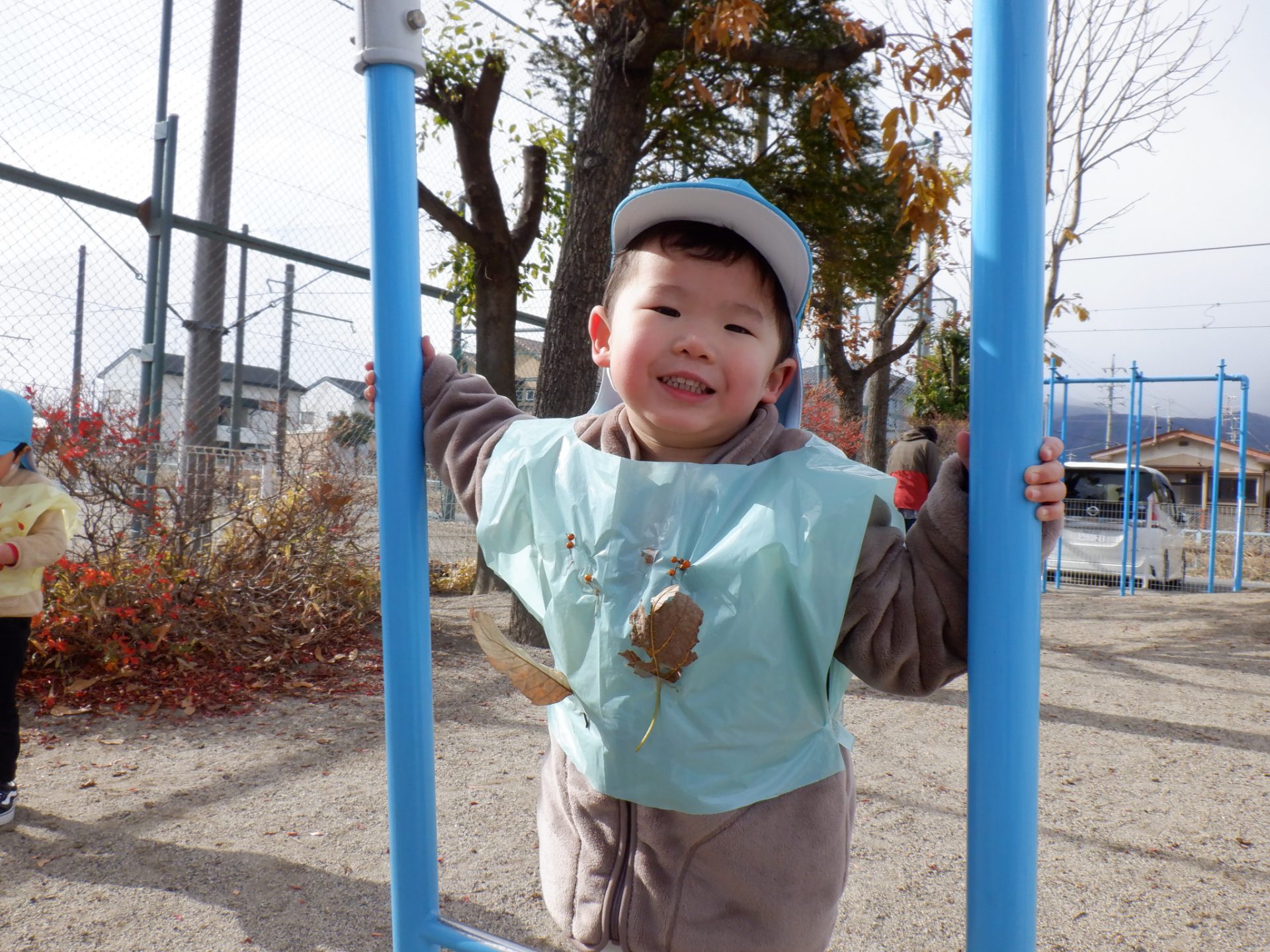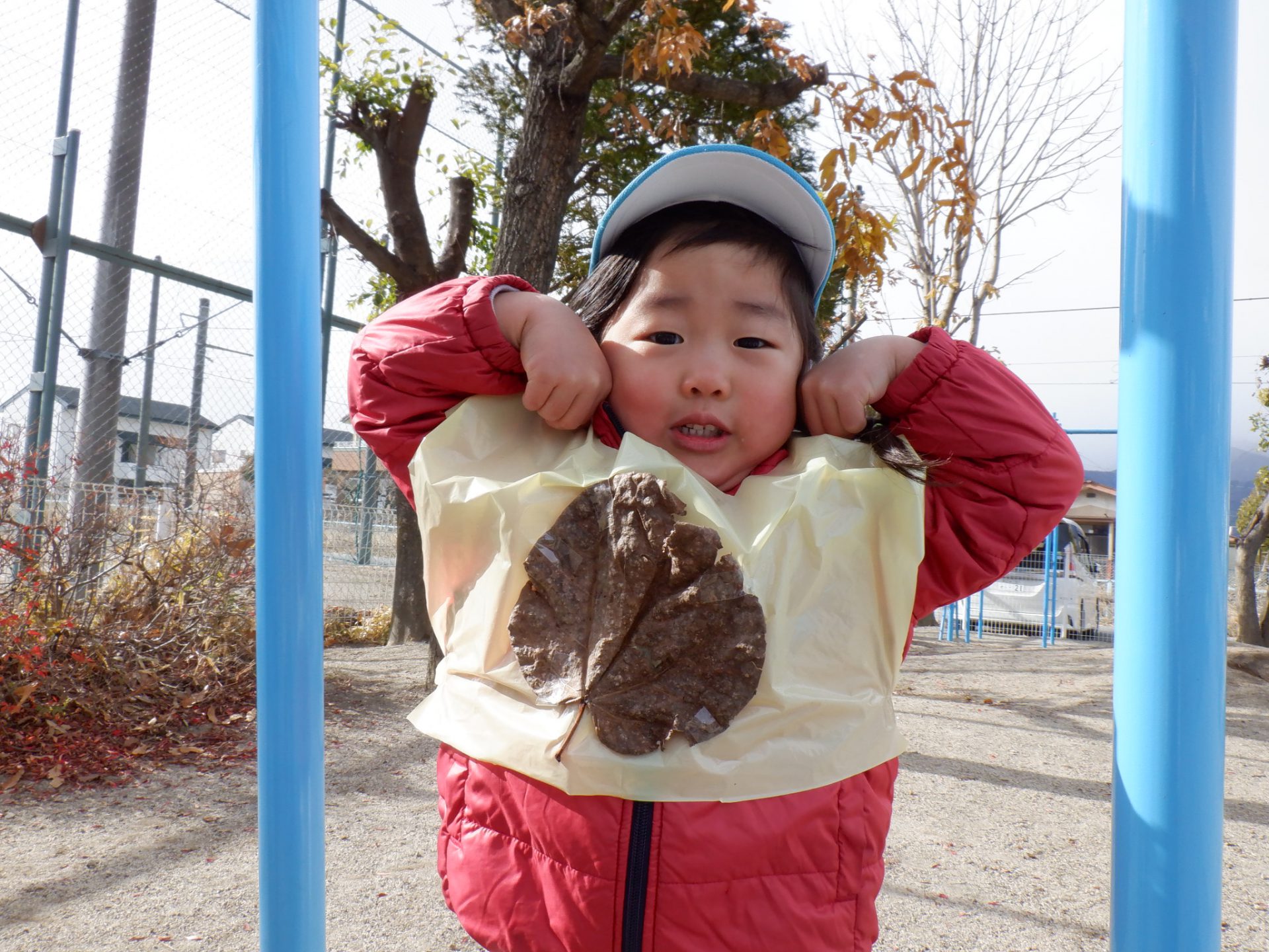どんなふうにどこまで飛んでいくのか、友だちとどちらが遠くまで落ち葉を飛ばせるのか、風に舞う葉っぱの様子を楽しんでいました。