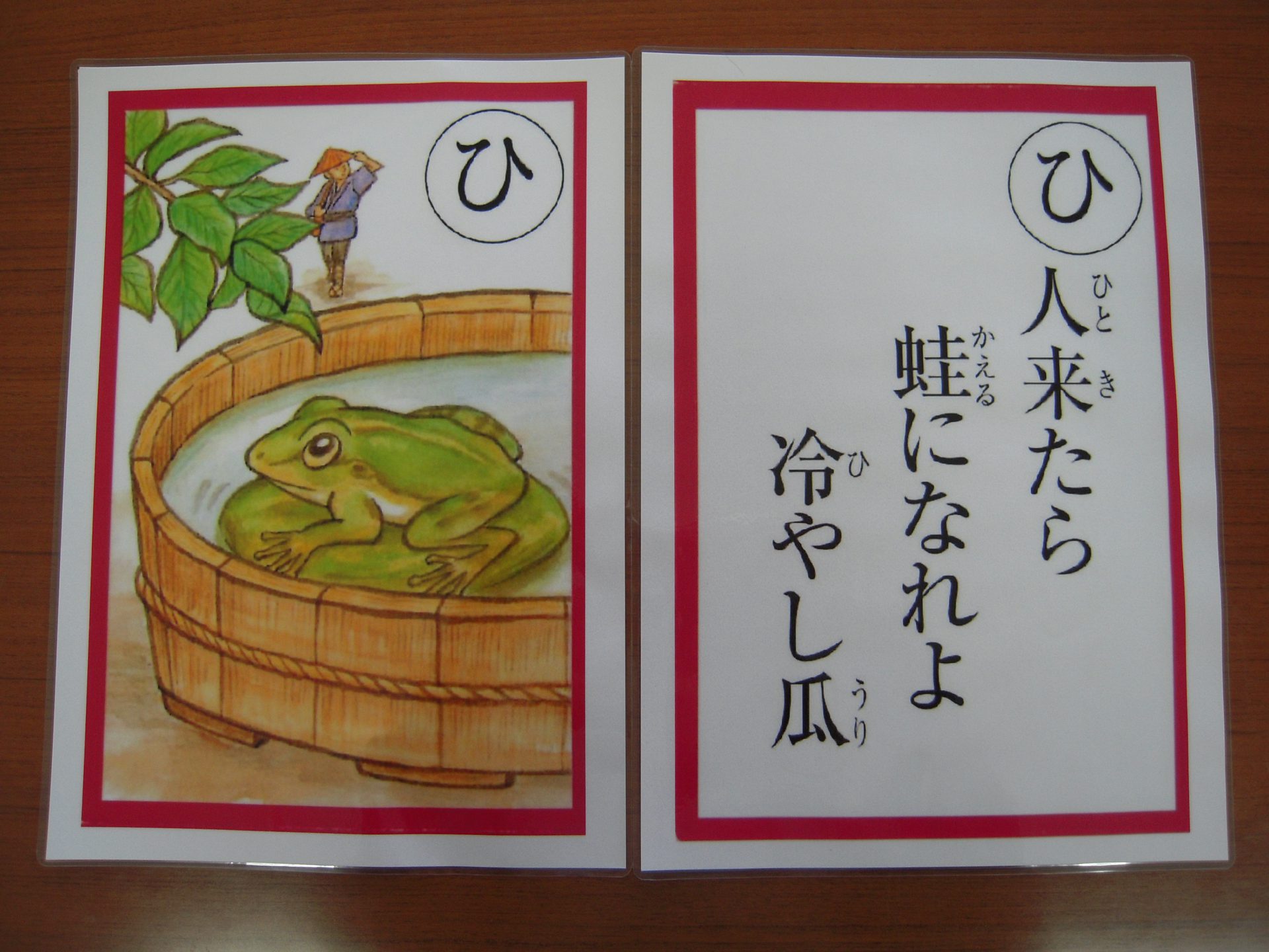 一昨日かえるパンを食べた印象がとても強かったようで、かえるの俳句の絵札を見ると、