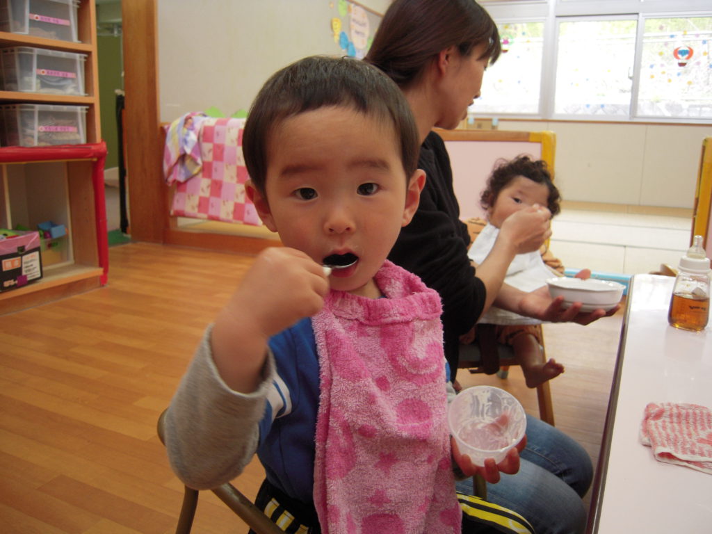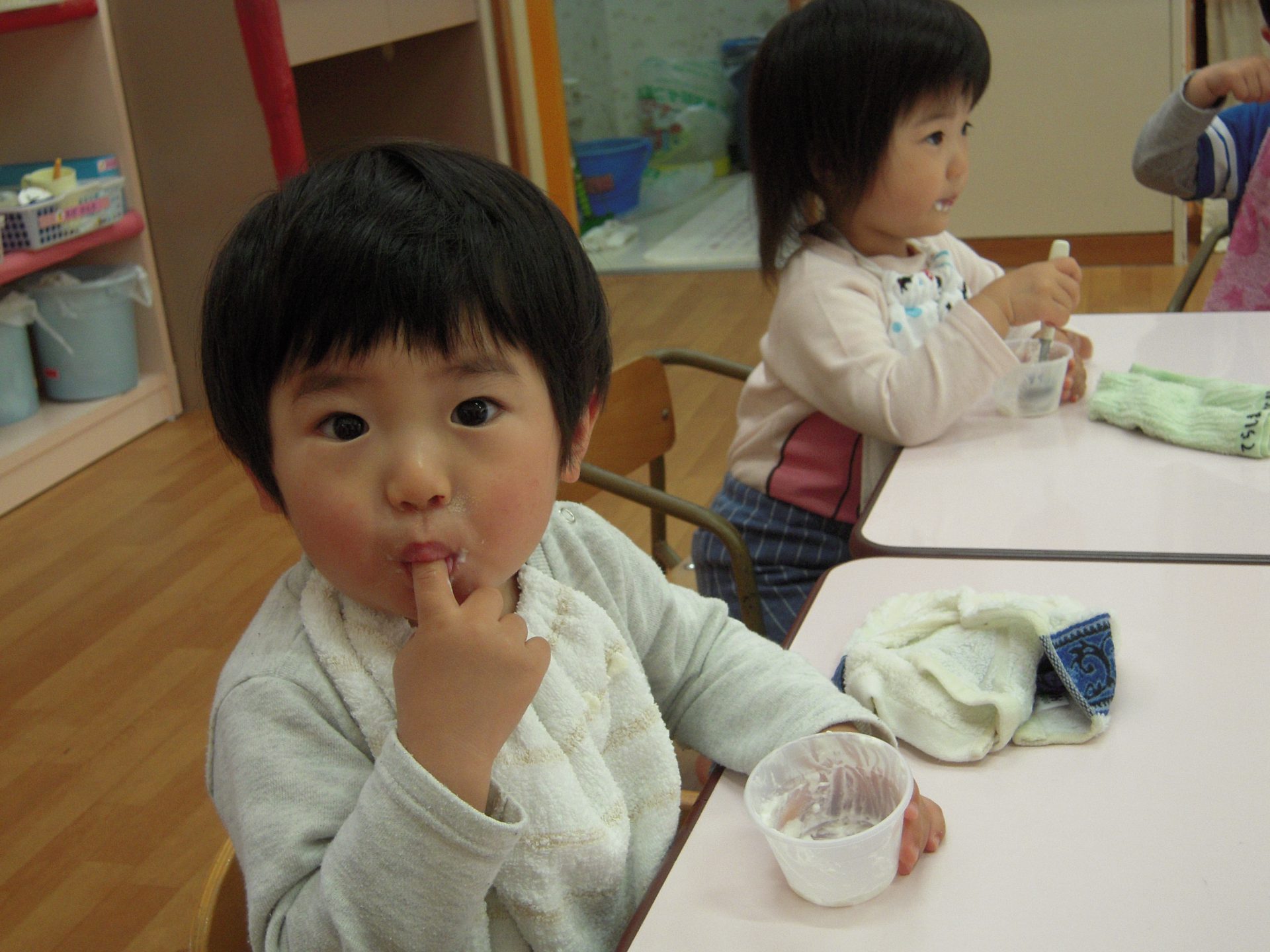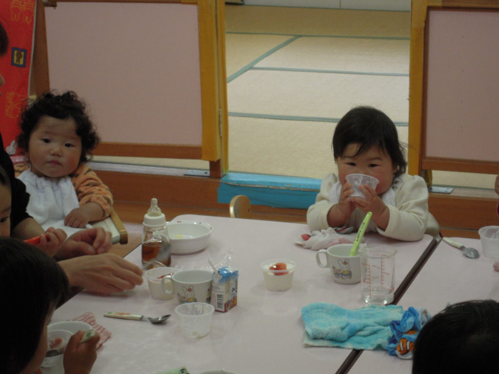 食べ終わった後に、まだ食べたい様子の可愛らしい姿が見られた未満児さん。
