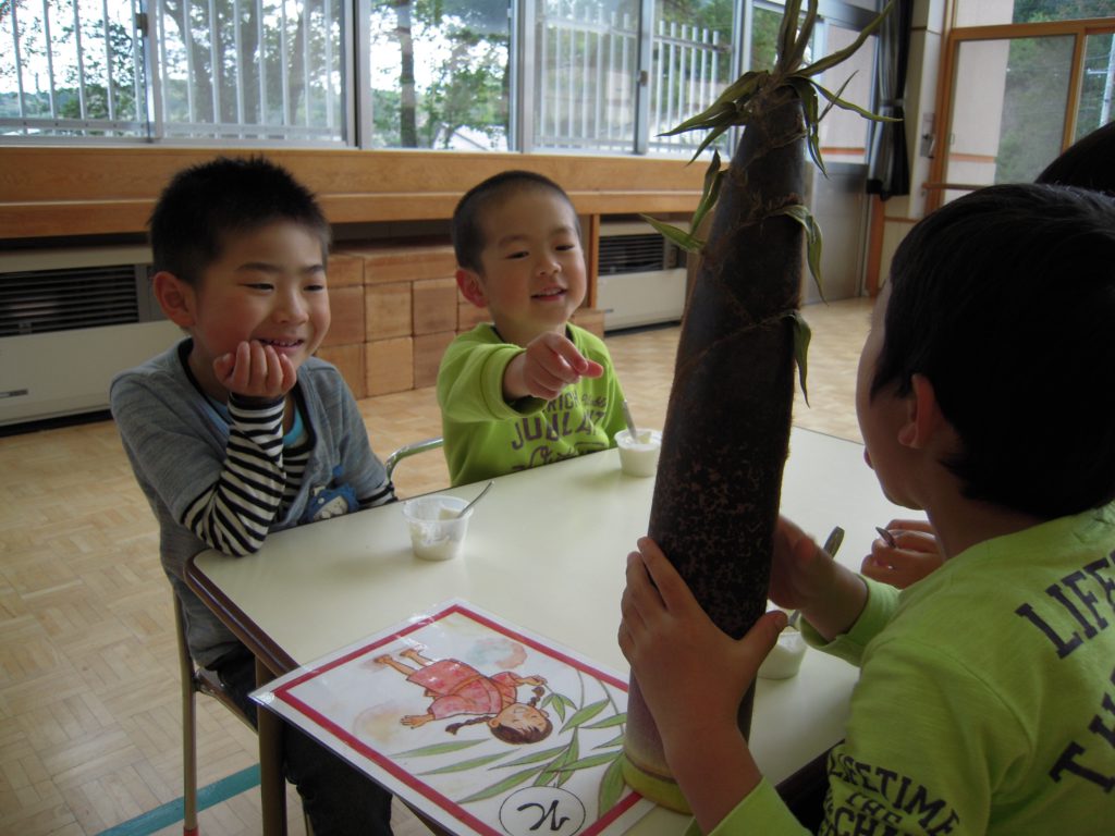 これから給食の先生がゆでてやわらかくしてくれるんだよ。