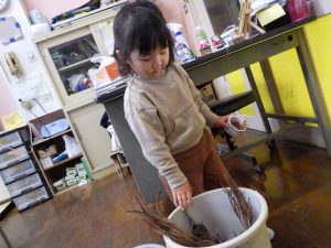 高いところをとる時は、おばあちゃんに手伝ってもらったり、南天以外の自然物を自分で頼んでとらせてもらっている子もいました。