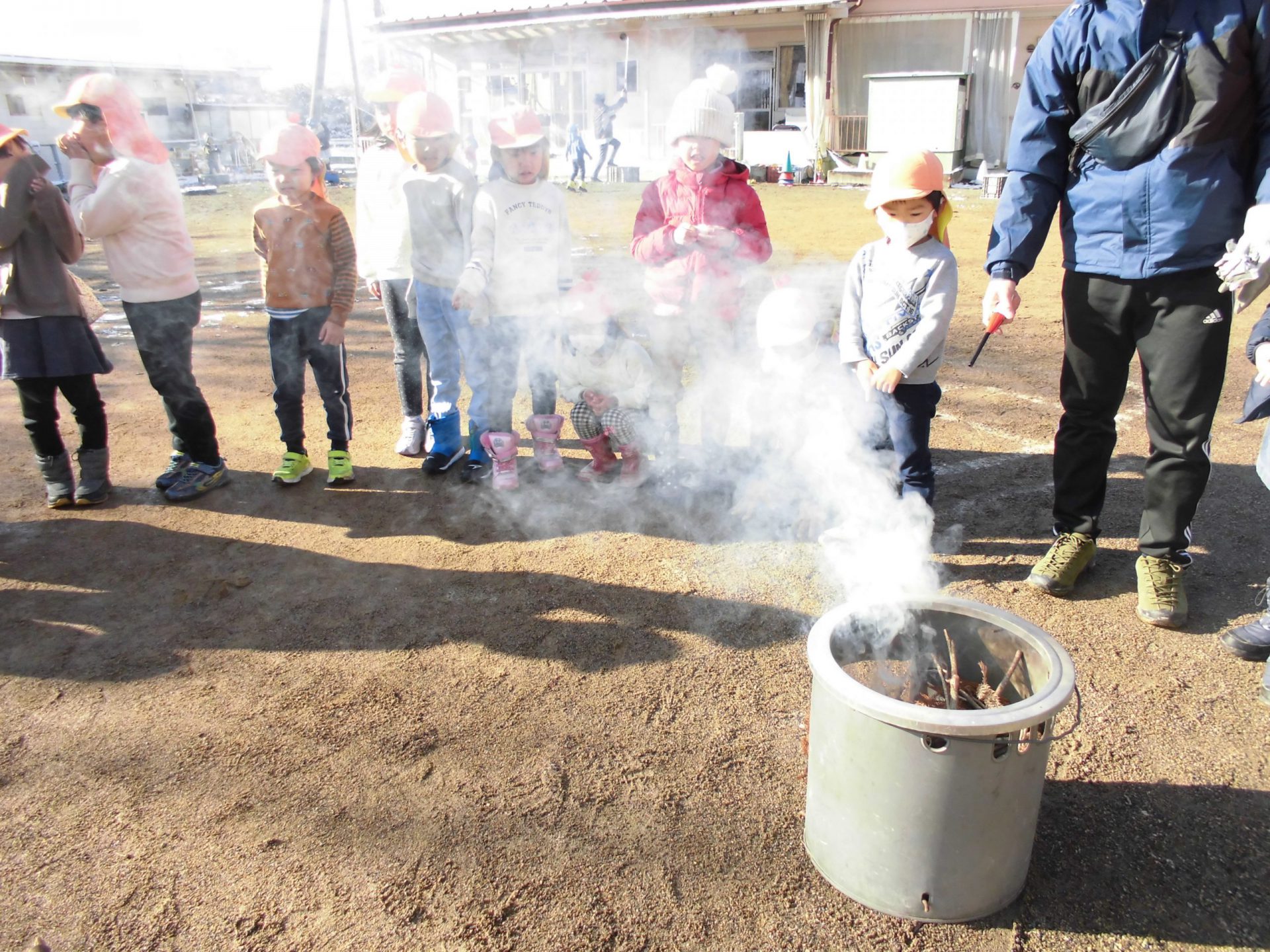 年少さんも一緒に暖を取ります・・・。