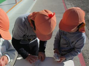 夏に園庭で手植えをした稲。稲を食べに来た虫や稲の高さを見たりして、観察してきました。