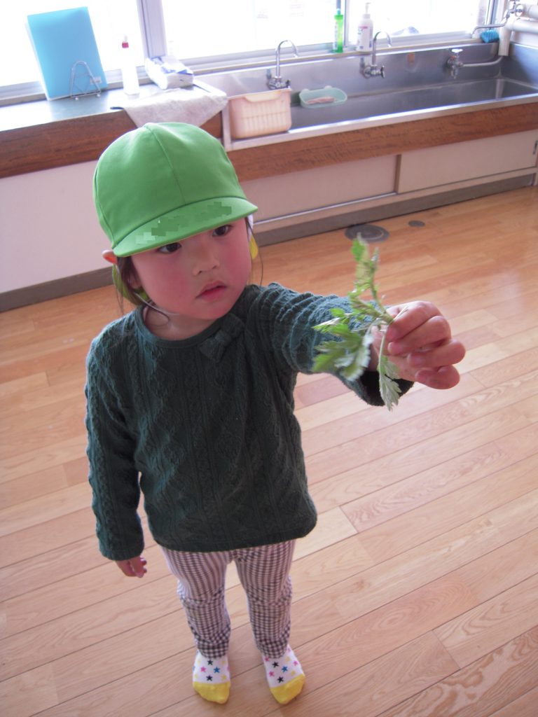と園舎裏で遊んでいて見つけたよもぎを持ってきてくれました。
