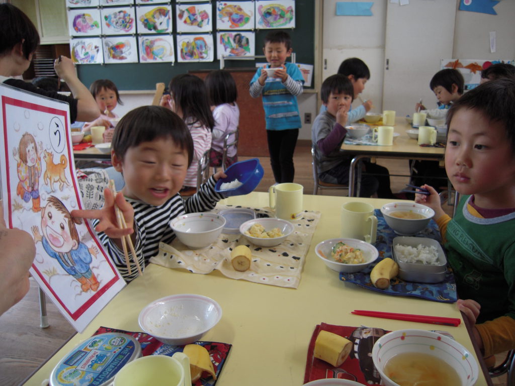 子ども達とお昼を食べながら、一茶俳句献立の話をしました。