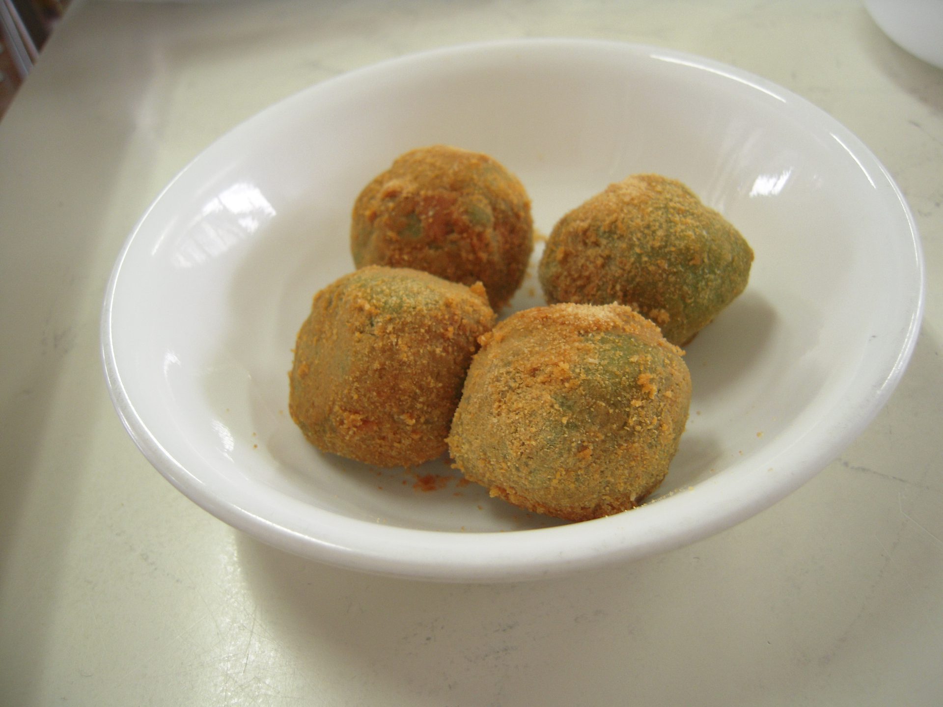 無事、やわらかく緑色もきれいよもぎ団子が完成!