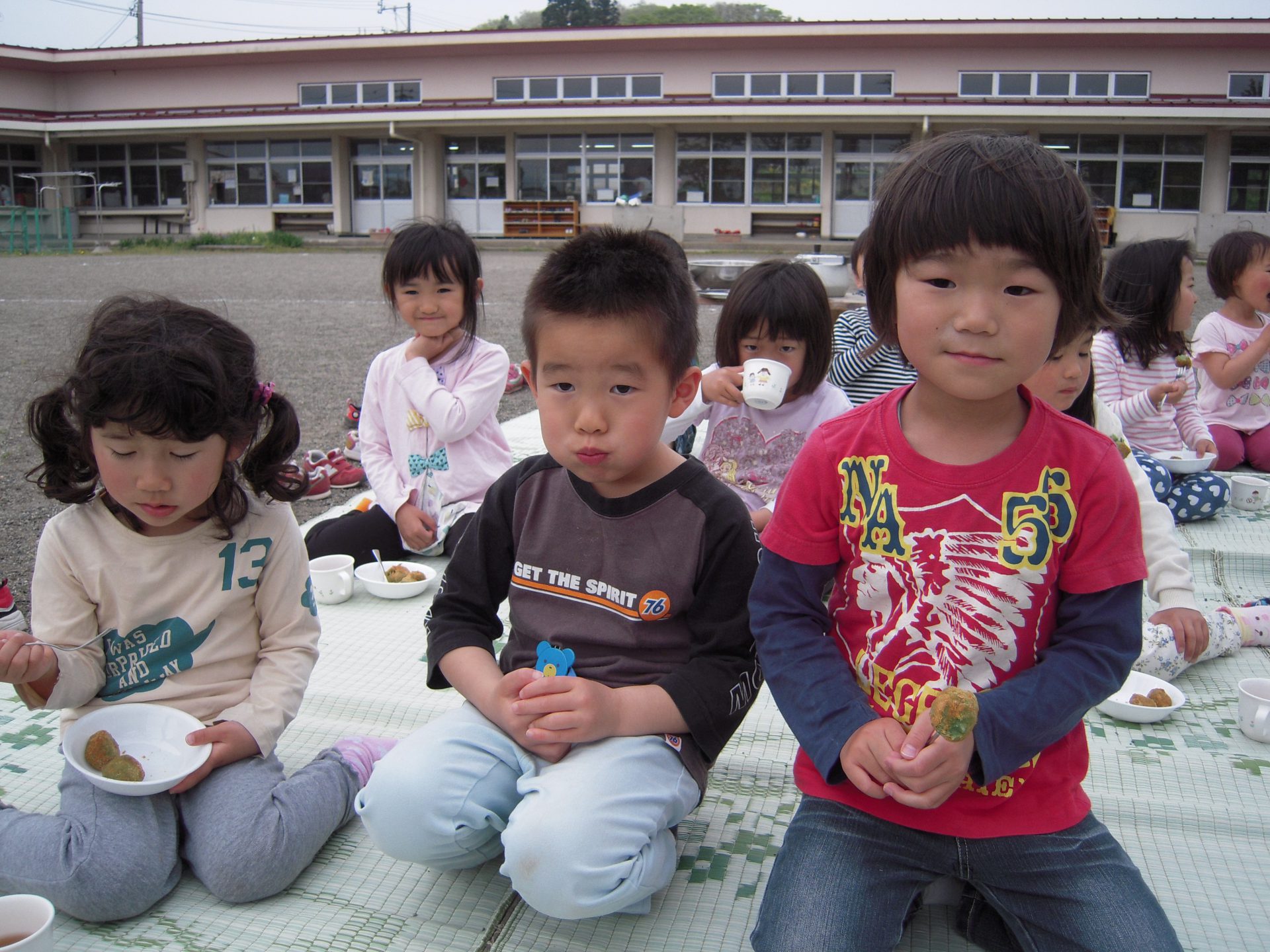 おやつの後、給食室の辺りから子ども達の元気な声が聞こえてきました。