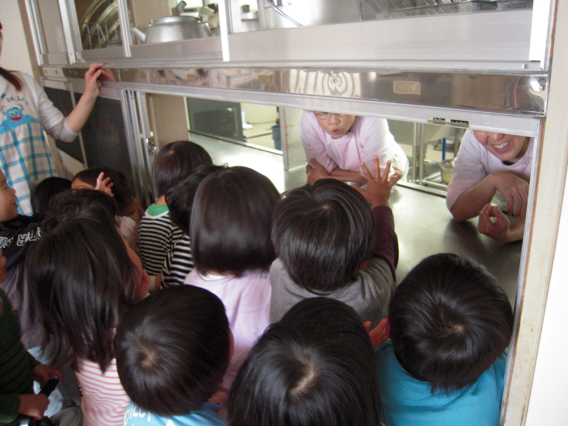 「給食の先生が作ってるとき、窓からのぞいて見てたんだ」