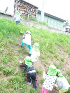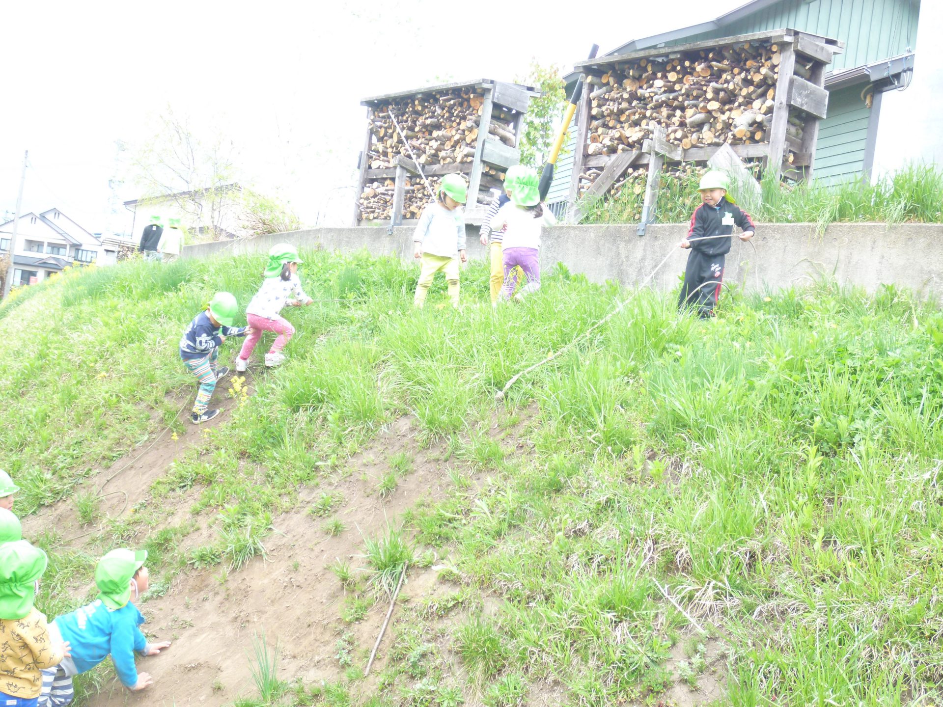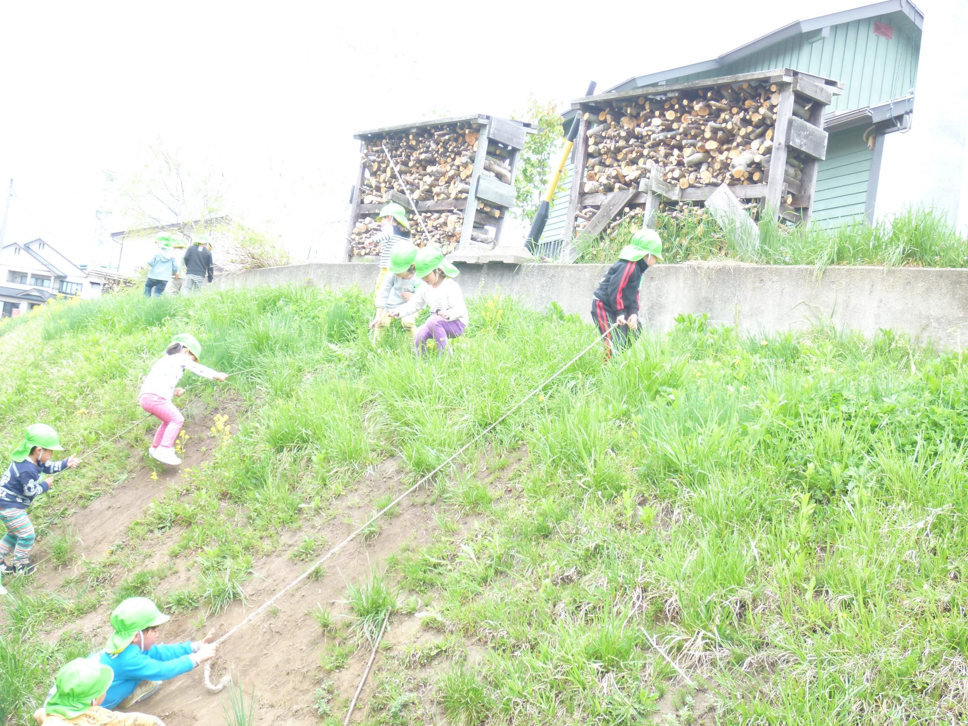 先に登っていたお友達がロープを下のお友達に渡し、上から引っ張ってくれる優しい姿も。