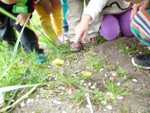 わかります?大人なら見過ごしてしまいそうな小さなダンゴムシにも子ども達はすぐに見つけてしまう素敵な目を持っているんですね。