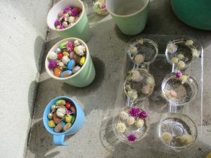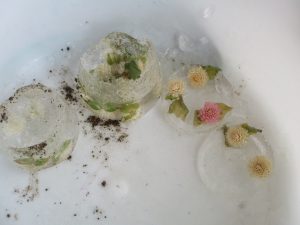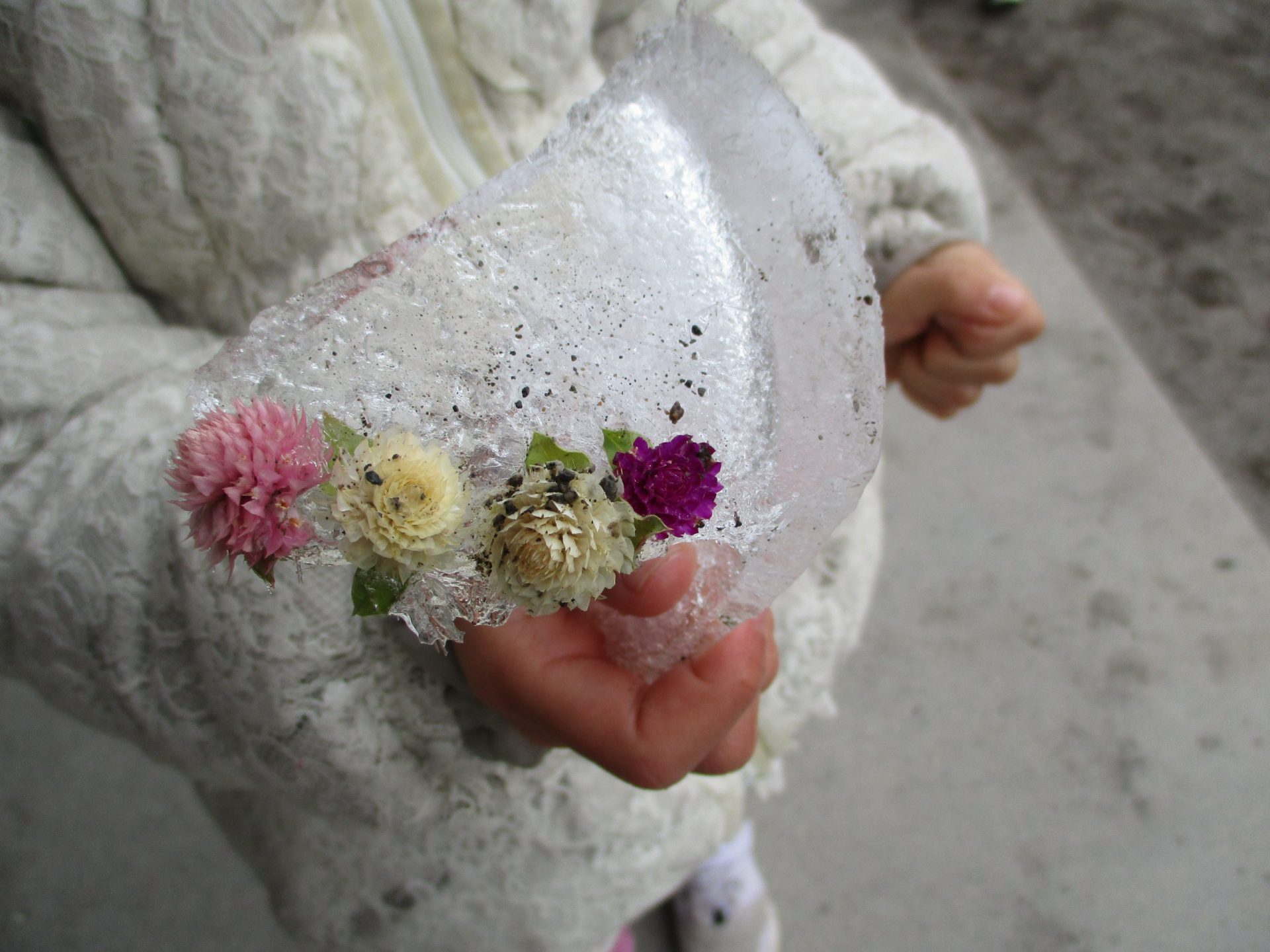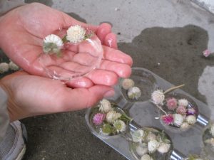 年長さんが、ドライフラワーを入れた氷を見せてくれました。
