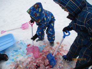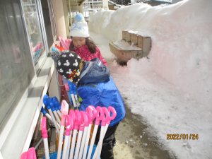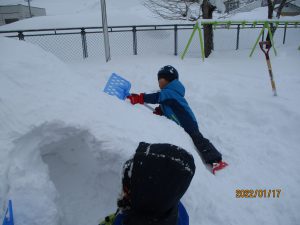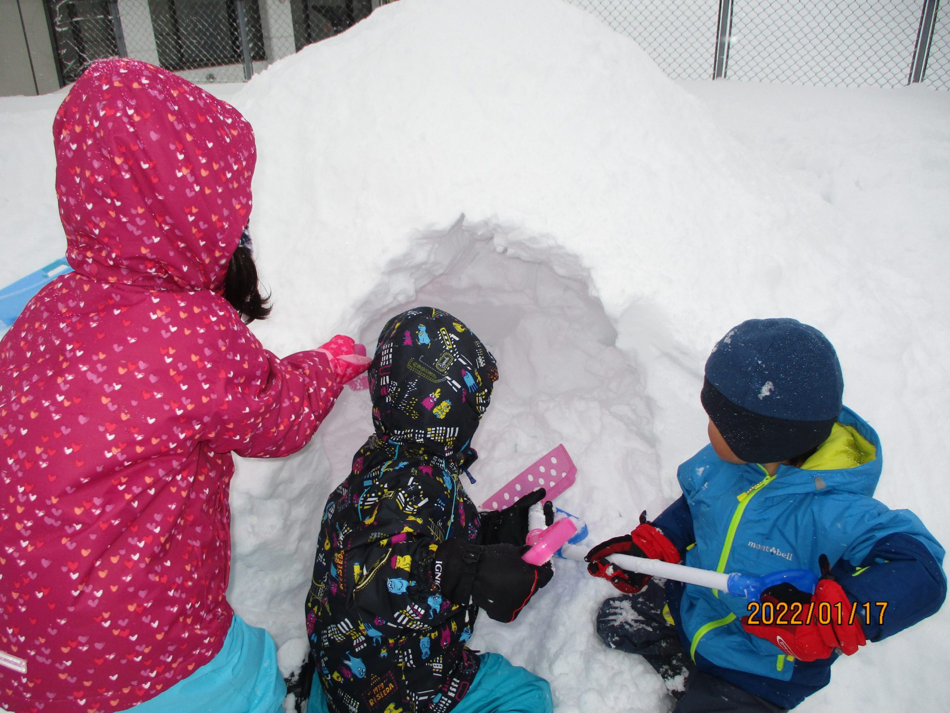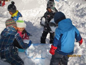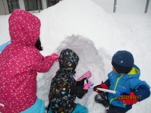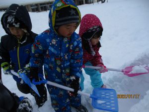 雪かきやお家ごっこなど生活の経験を活かして遊んでいます。さすがです。