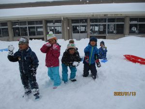 そして、豪雪地方のとっておきの保育の環境、冬や雪をおもいきり楽しみ性質に疑問を持ったり面白さを感じていきたいです。