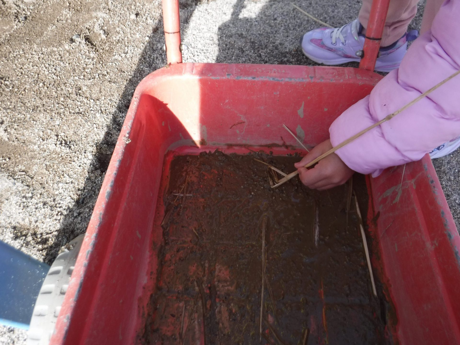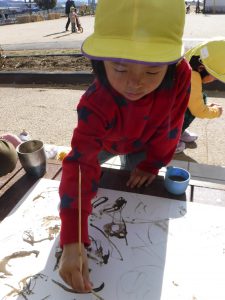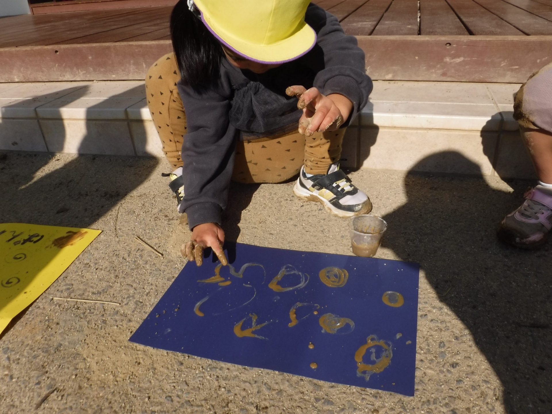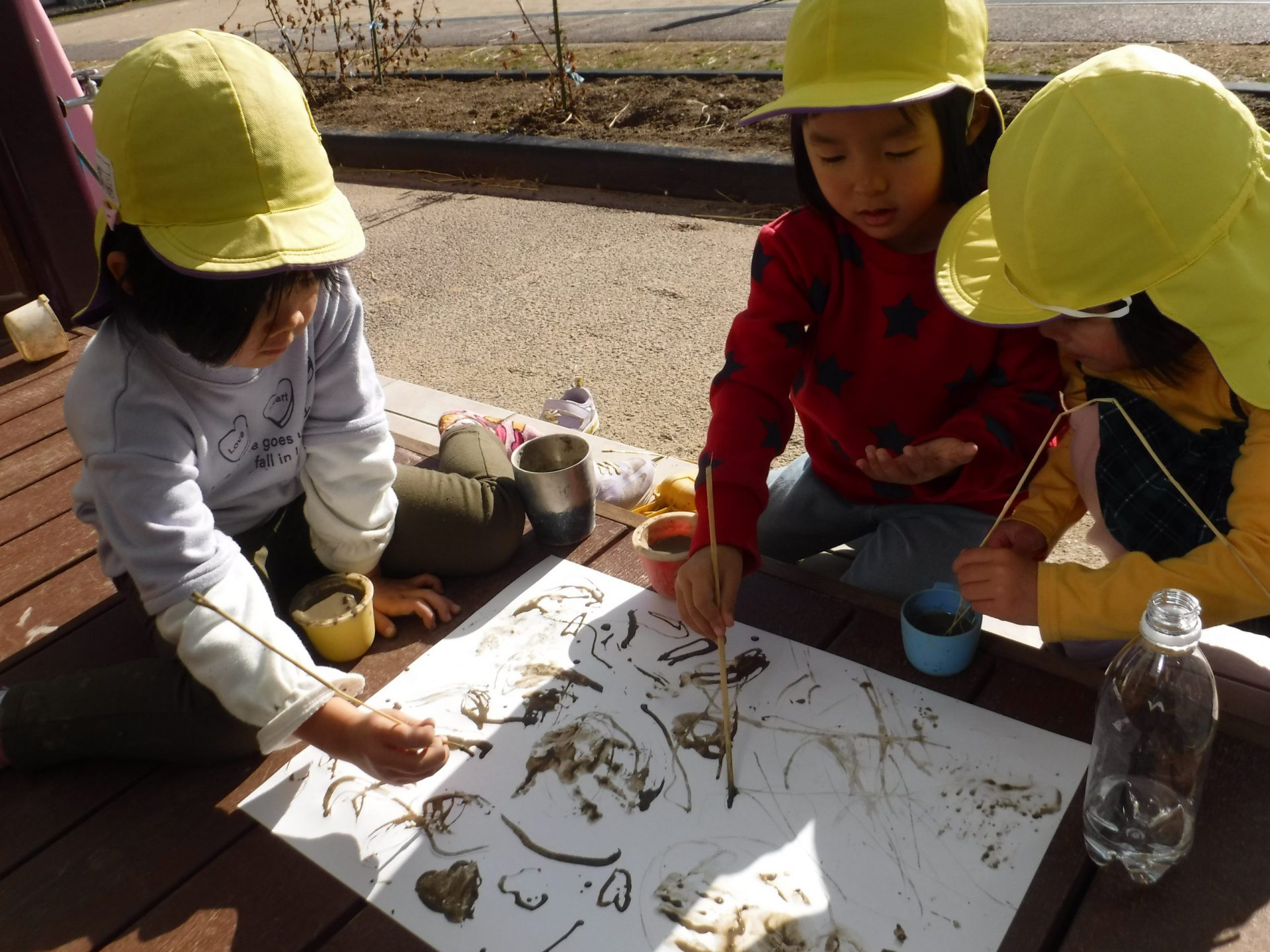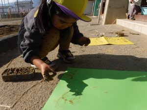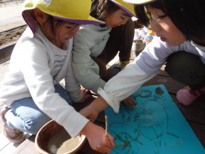 水の加減、乾いてからの色の変化、泥の色の違い・・・工夫して遊び、楽しむ中でたくさんの発見をし、自然からたくさん学んでいる子どもたちです。