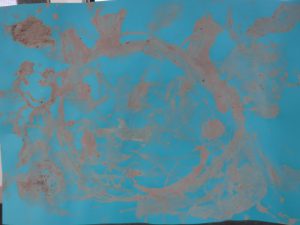 先が割れて筆のようになったわらを使い、絵を描くという素敵な発見。