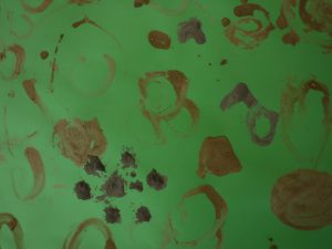 「もちょもちょしているね」「たれないくらいにすると上手に描けるよ!」
