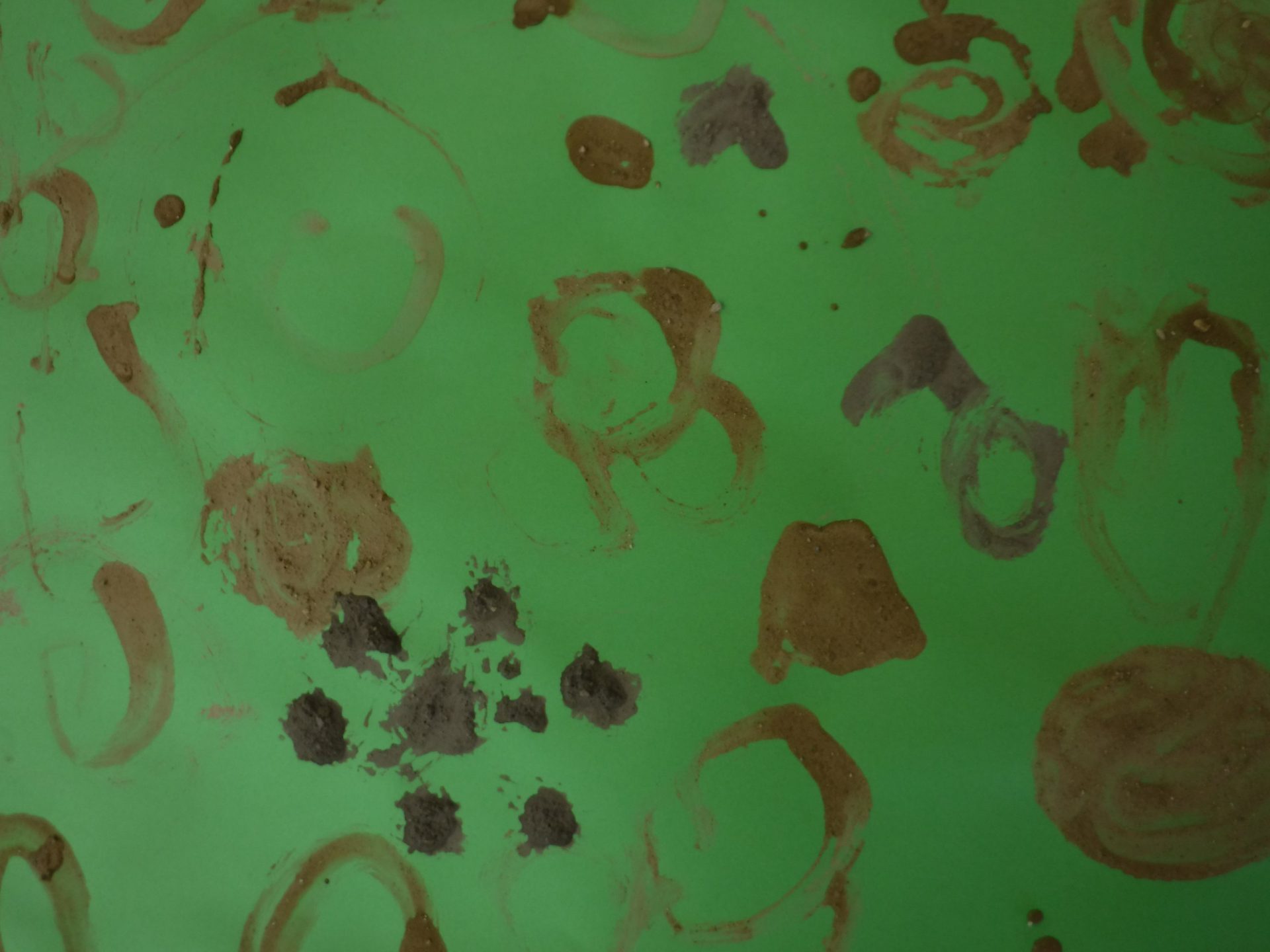 乾くと、泥の色が変わることに気が付いた子どもたち。