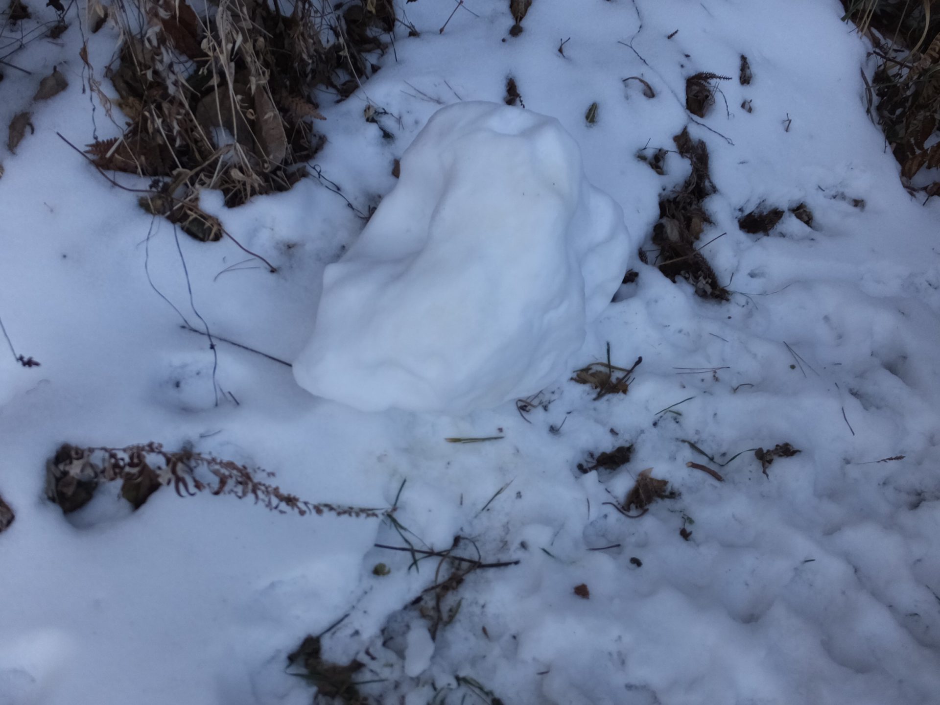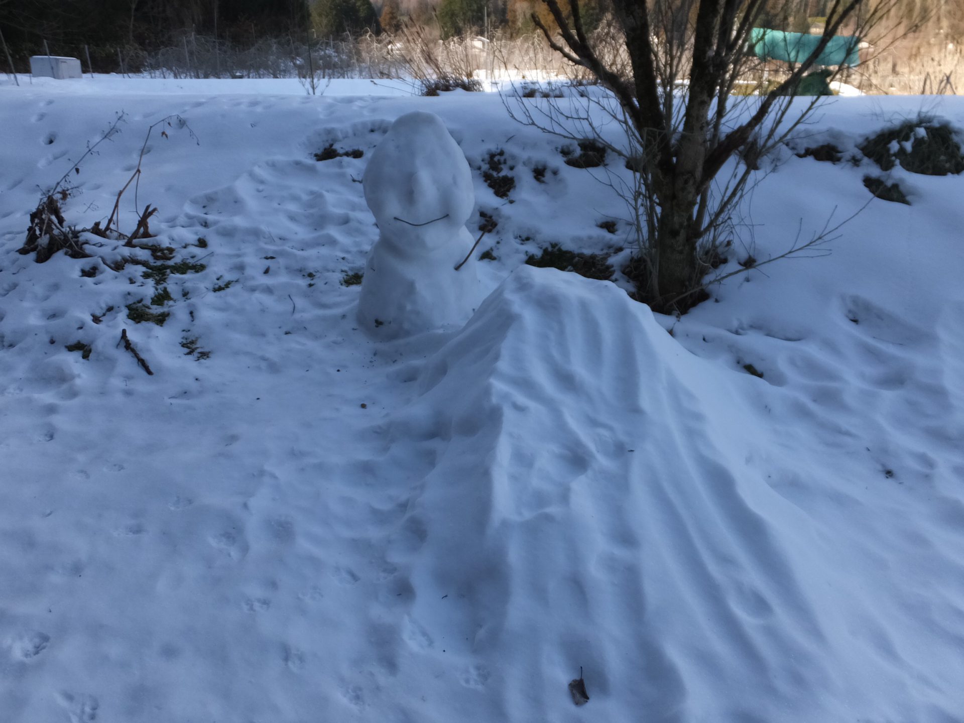 「ゆきだるまとすべり台があるよ 誰が作ったのかなー」