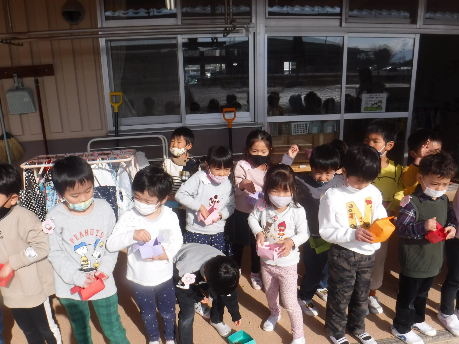 例年登場する”本物の鬼”は、園の玄関に飾られていた『イワシの頭・ヒイラギの葉』が怖くて来られない・・・と知り、ホッとした表情があちらこちらで見られました(^^)