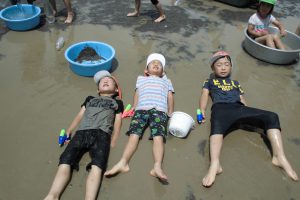 とてもダイナミックに水遊びを楽しんでいた子ども達。