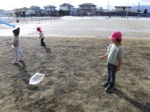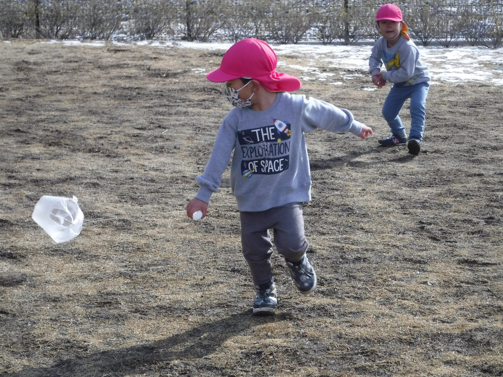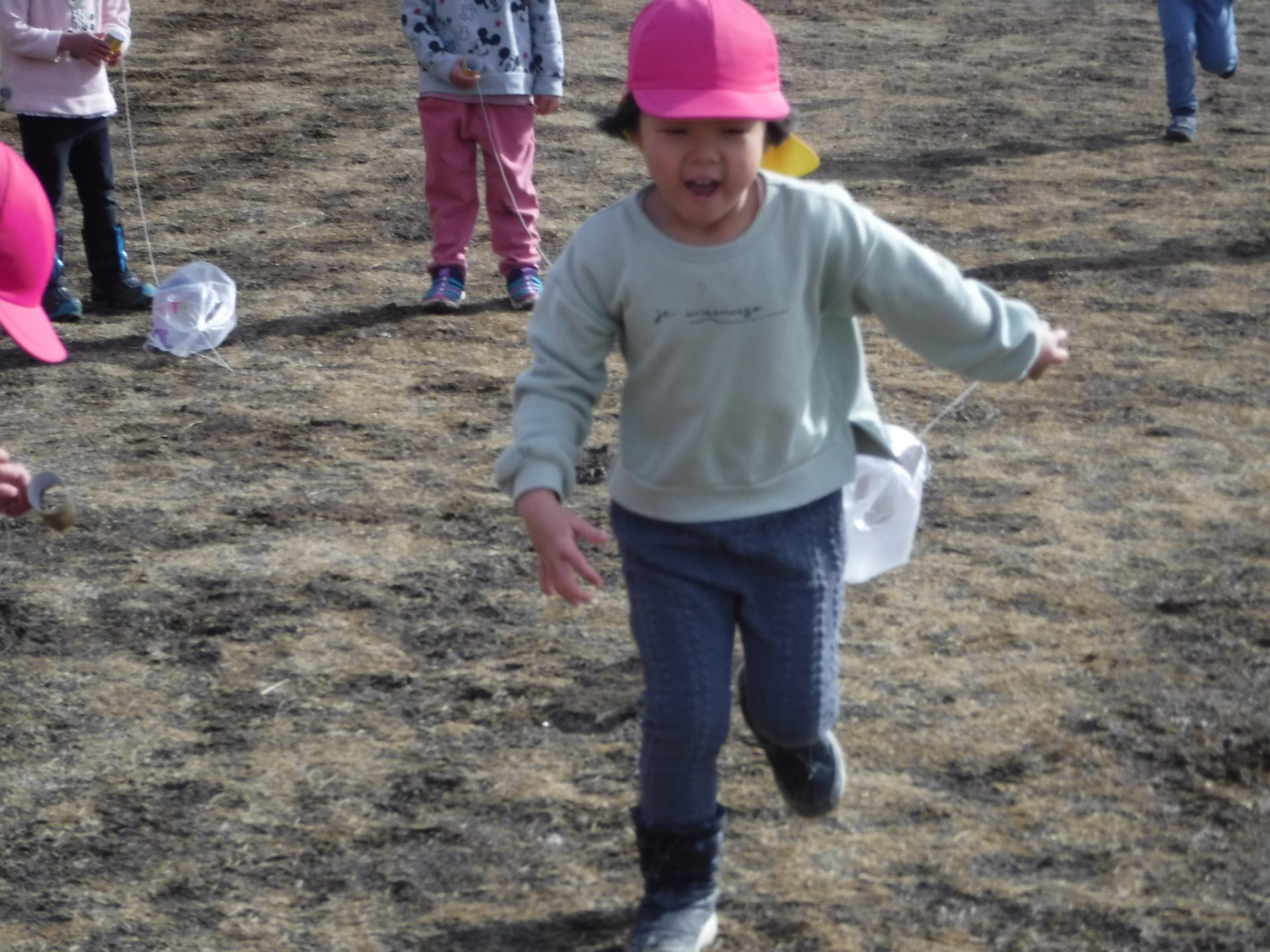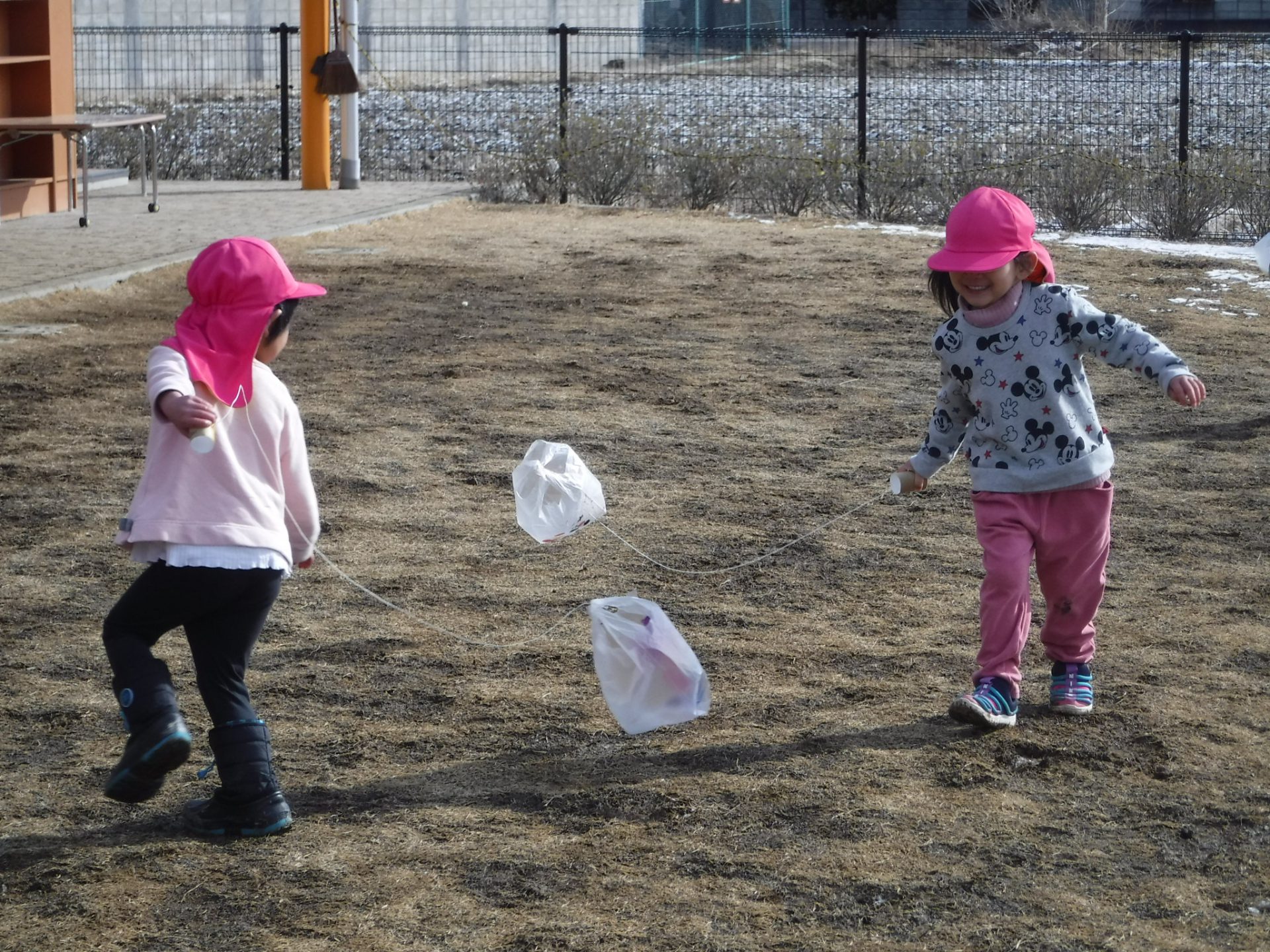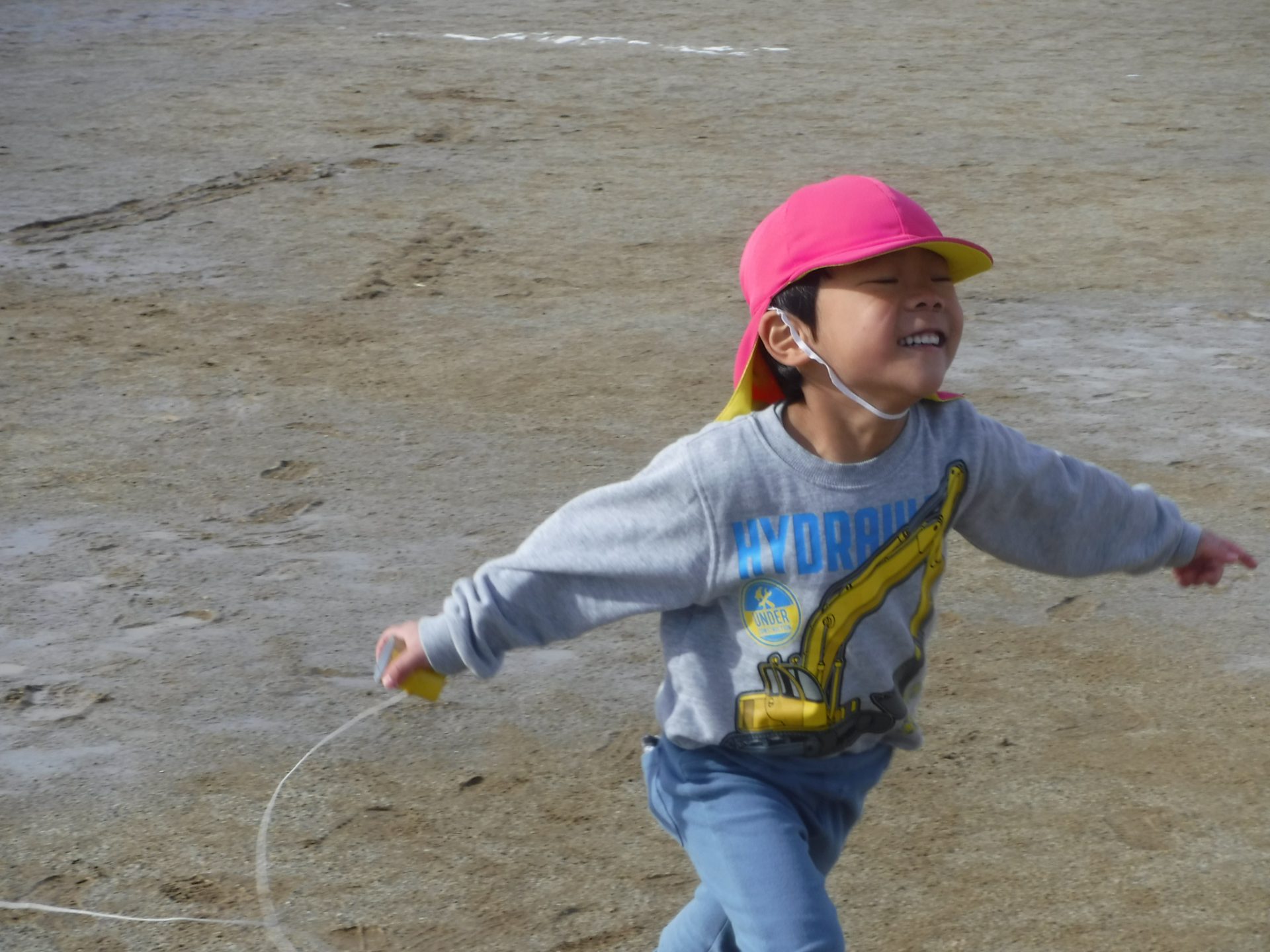 あそぶ中でそれぞれに発見があり、友だちと自分の気付きを伝え合う姿も見られました。「風吹いているから、たこやろう!!」と、次の日も外に飛び出していき、風を感じていました。