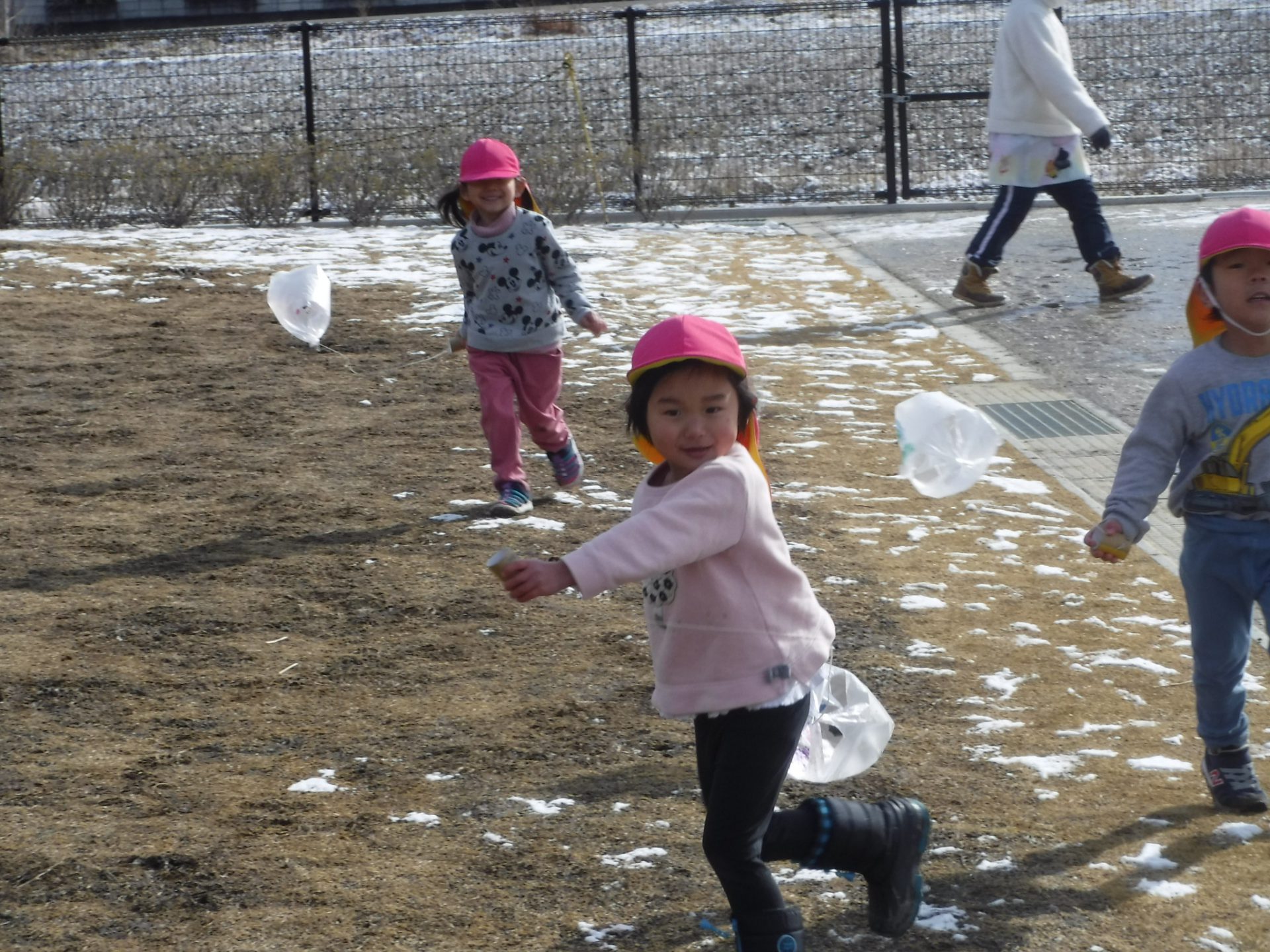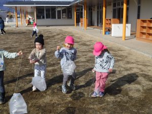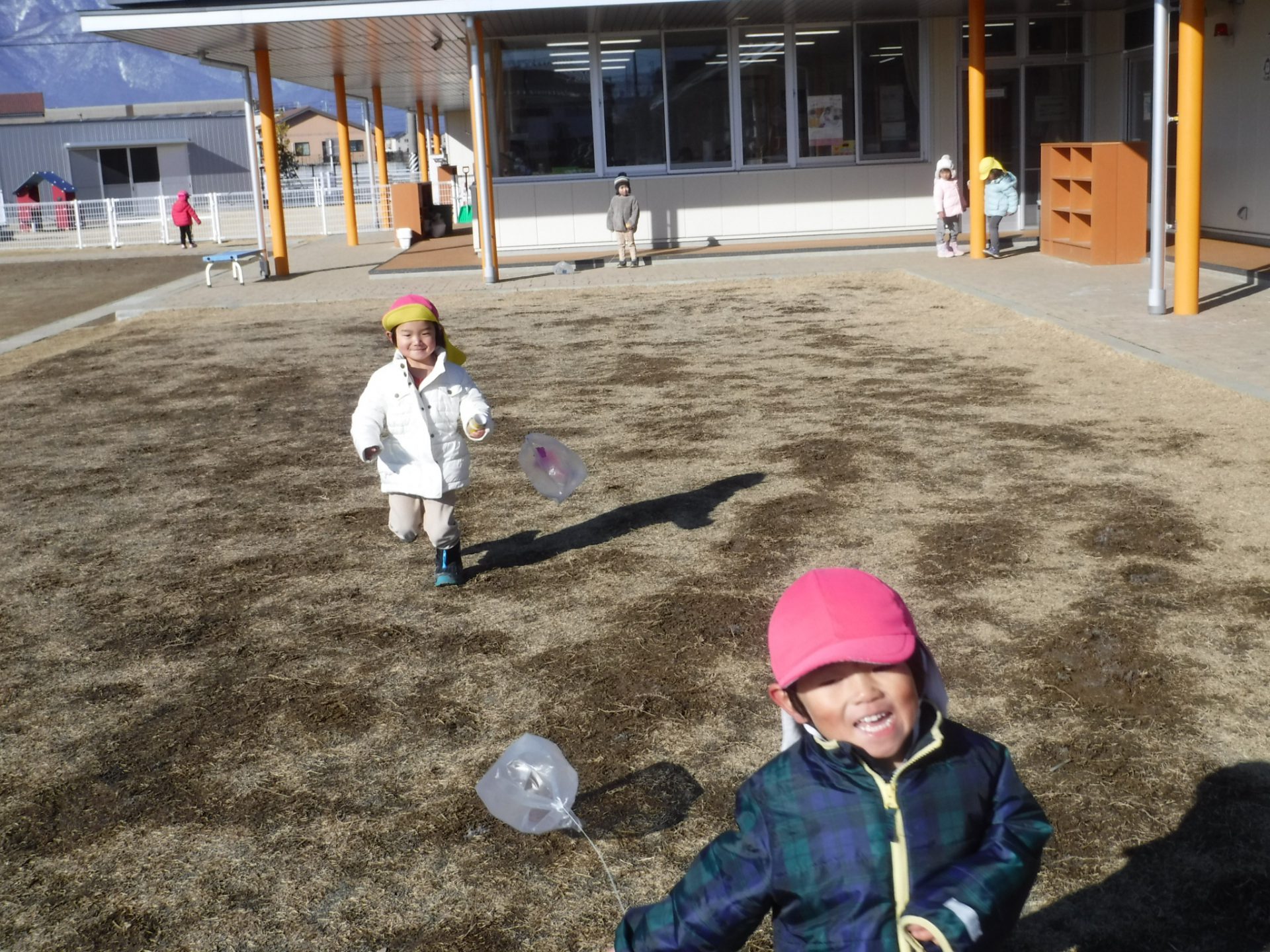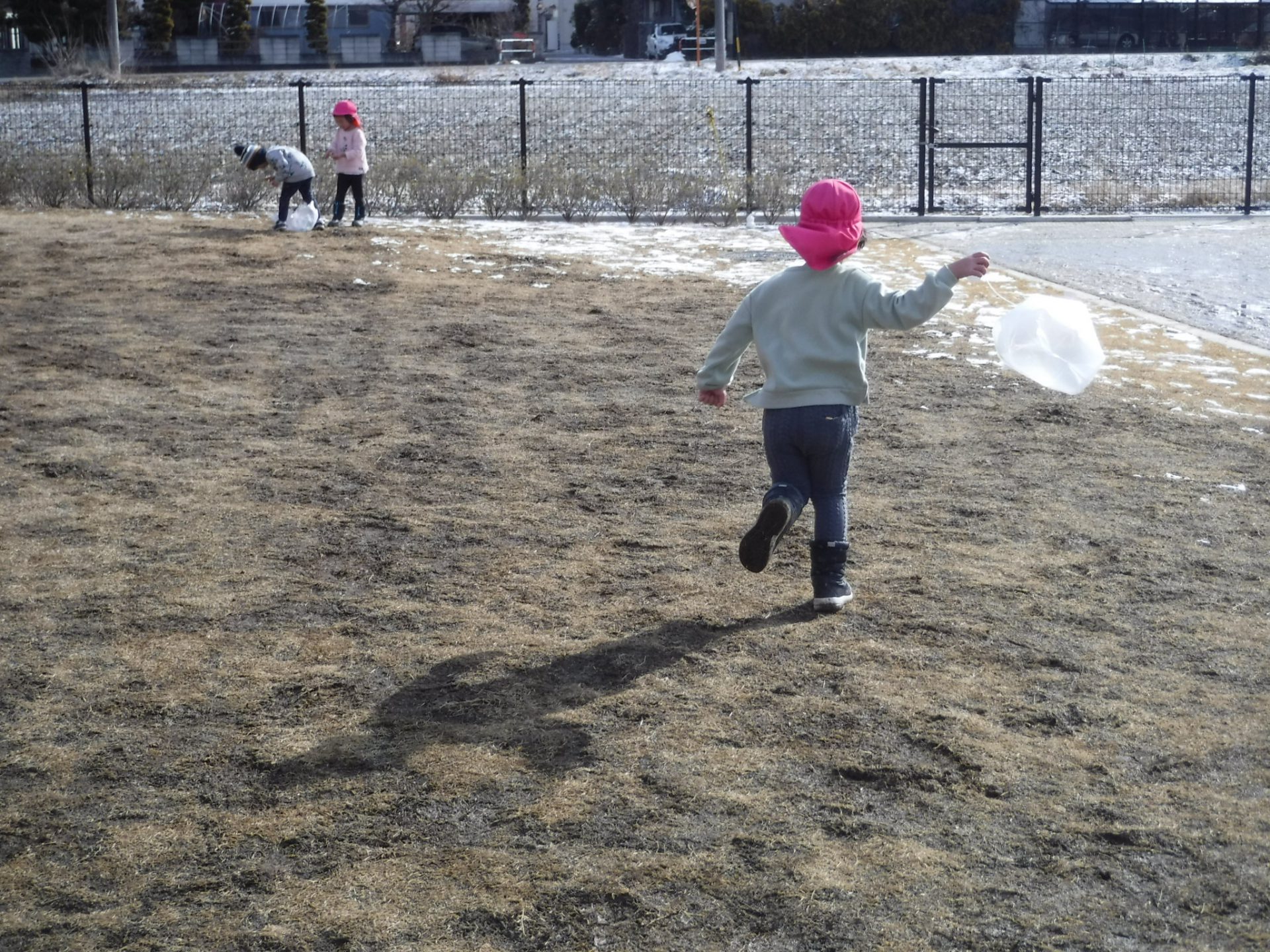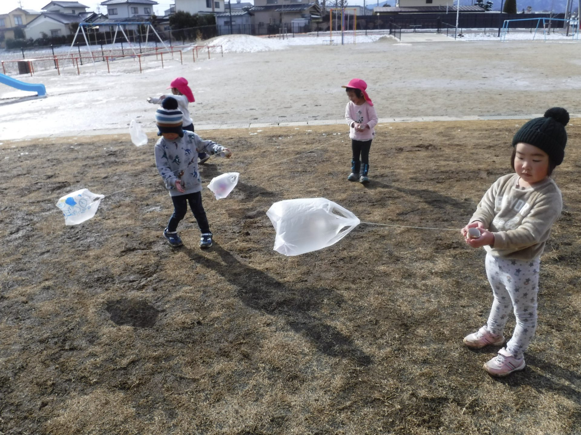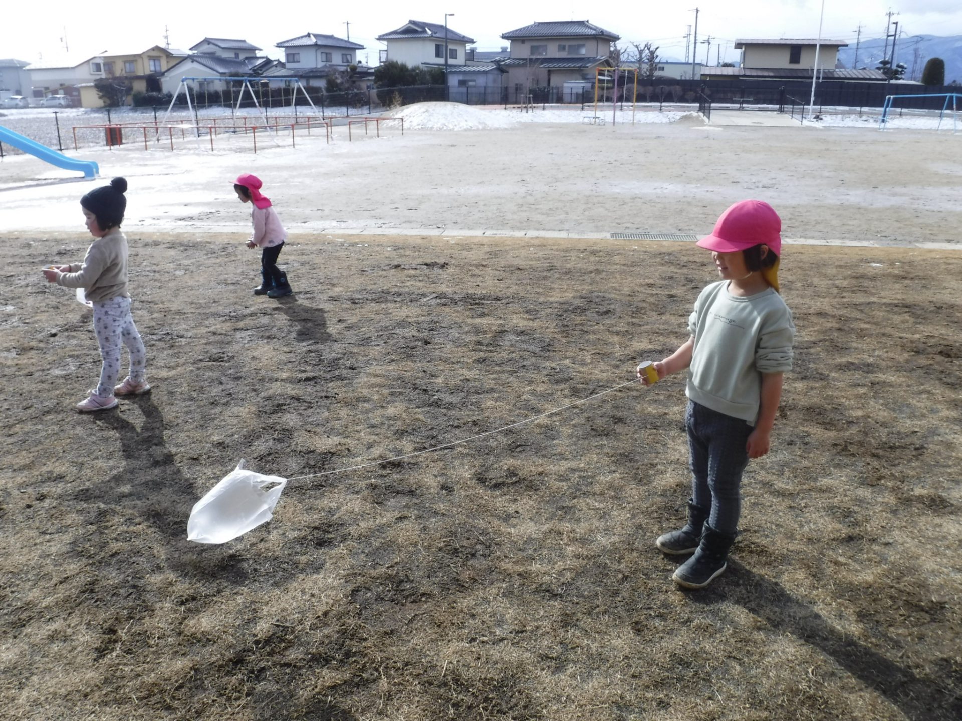 寒さが厳しくなり、思い切り体を動かすことが少なくなっていたので、楽しく体を動かせばと、たこあげをしてみました。