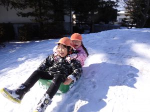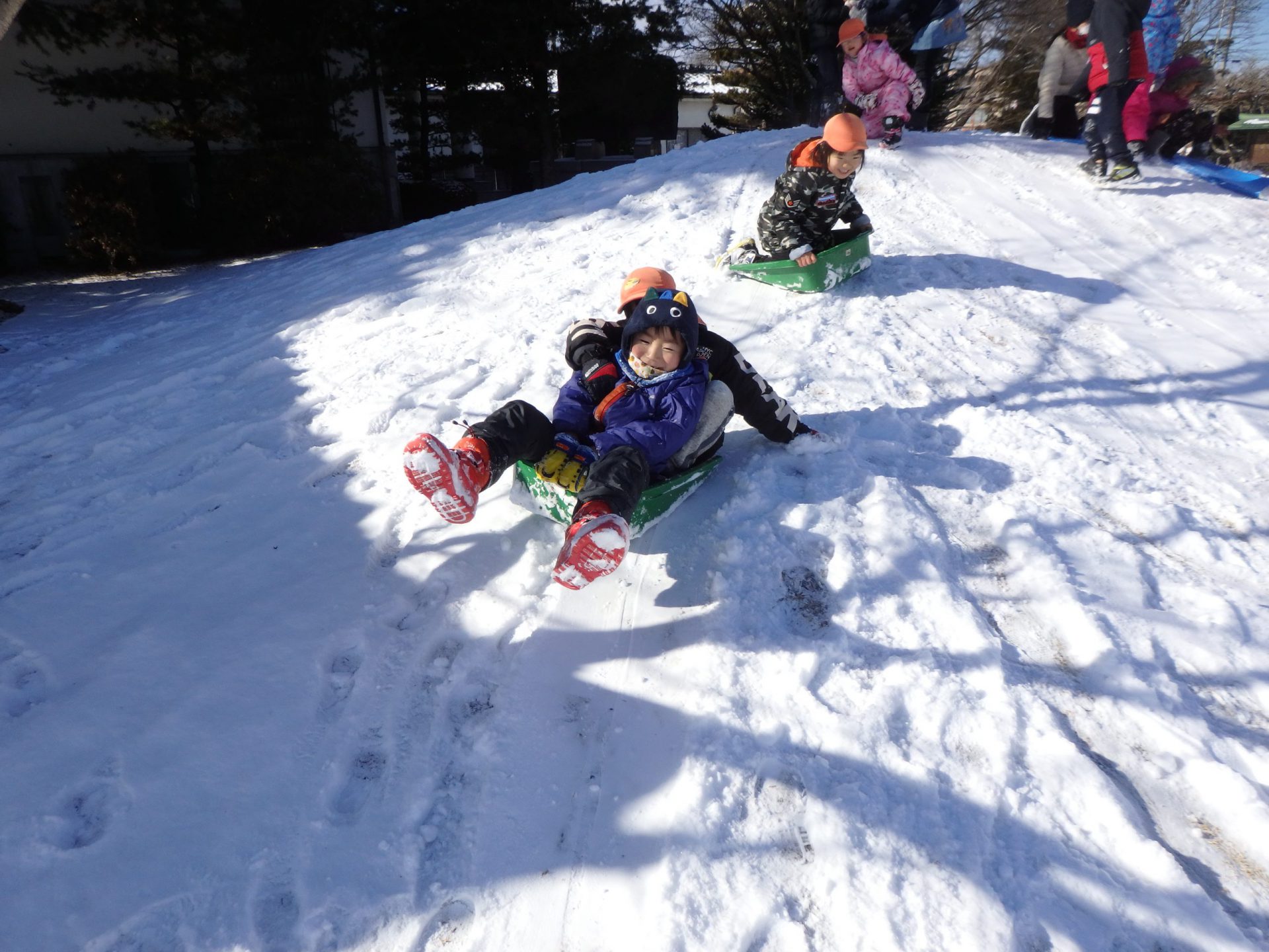 保育士も初めての試みだったので滑れるか不安もありましたが、実際にソリ滑りをすると、驚くほどとてもよく滑りました。