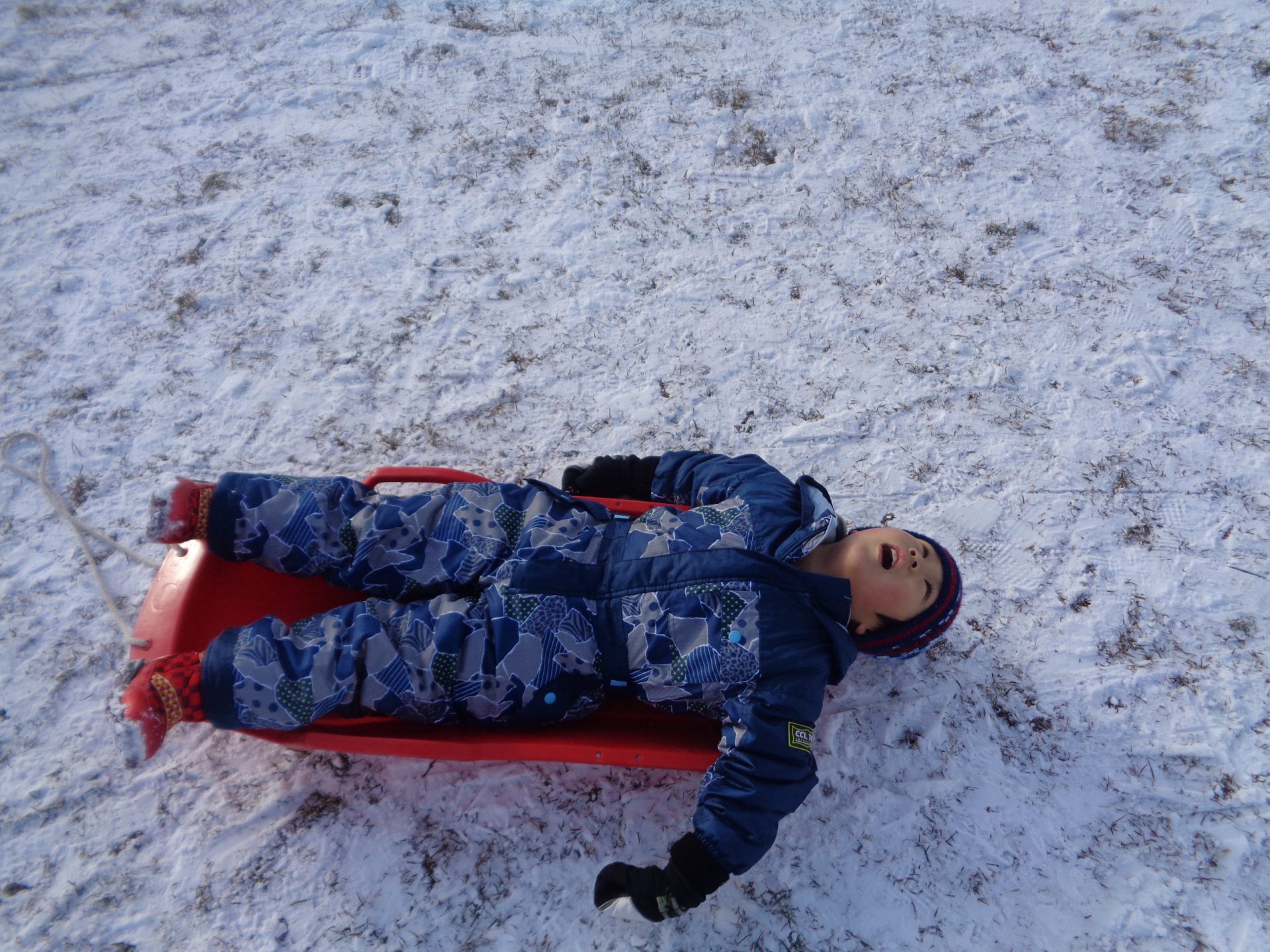 雪の上でコロコロ寝転んで雪の感触を楽しみます。