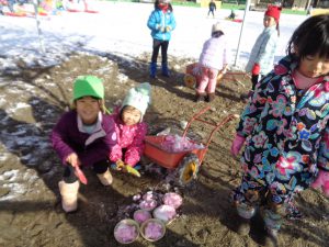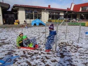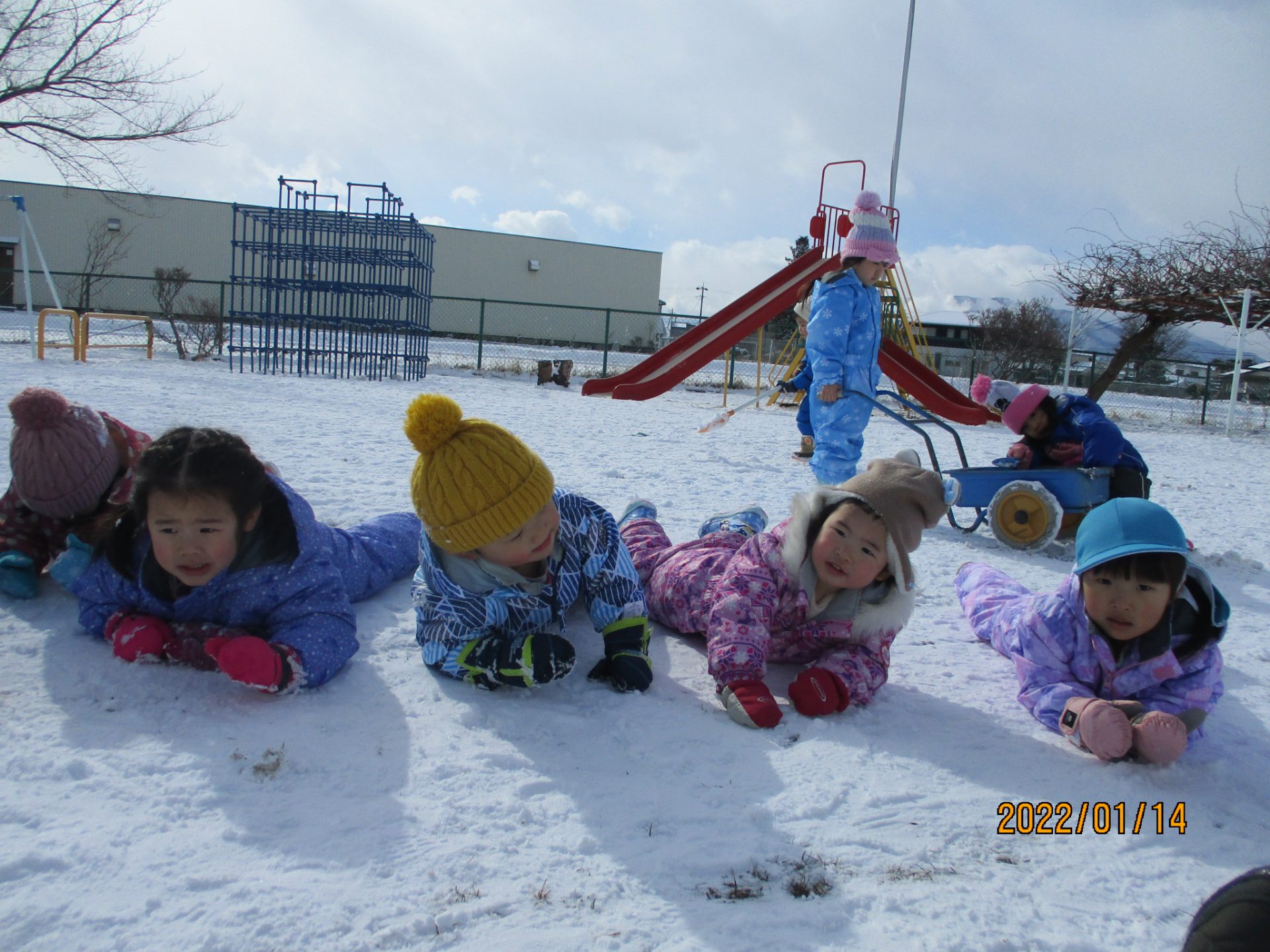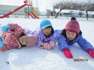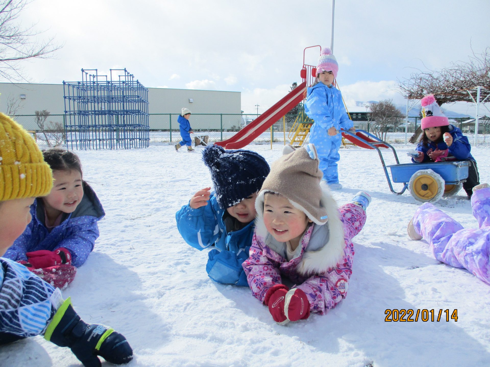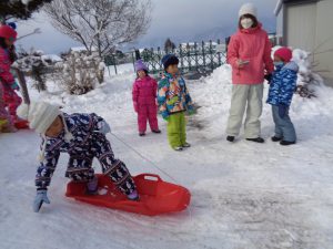 あと何回小さなオリンピックメダル候補たちが雪の中で遊ぶ(練習!?)することが出来るでしょうか。先生たちも一緒に雪遊びが出来ることを楽しみにしています。