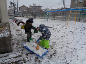 今シーズンは例年に比べ寒さが厳しく、氷や雪などさまざまな冬の外あそびを楽しみました。