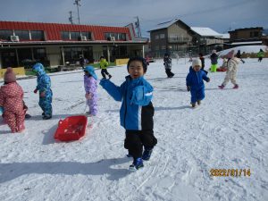 子ども達はおうちの方にスキーウェアやスノーブーツを用意して頂き、雪遊びが出来る日を心待ちにしていました。